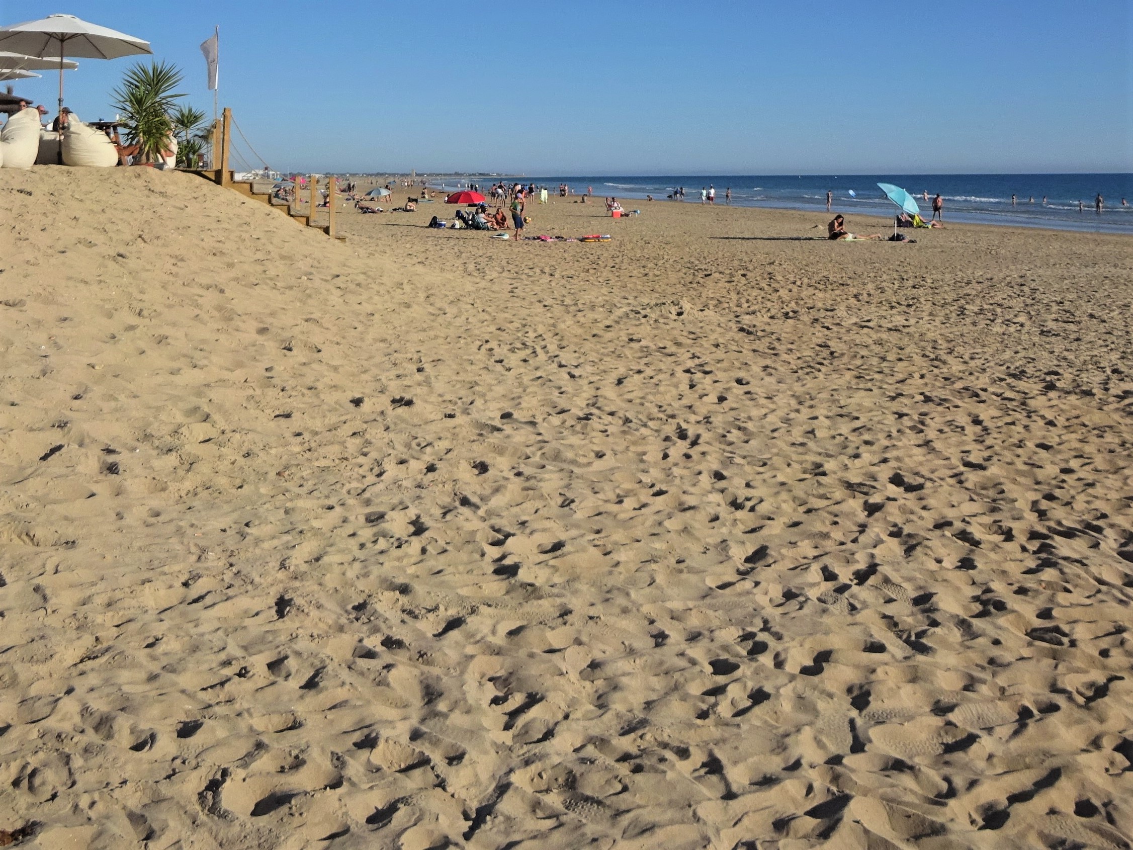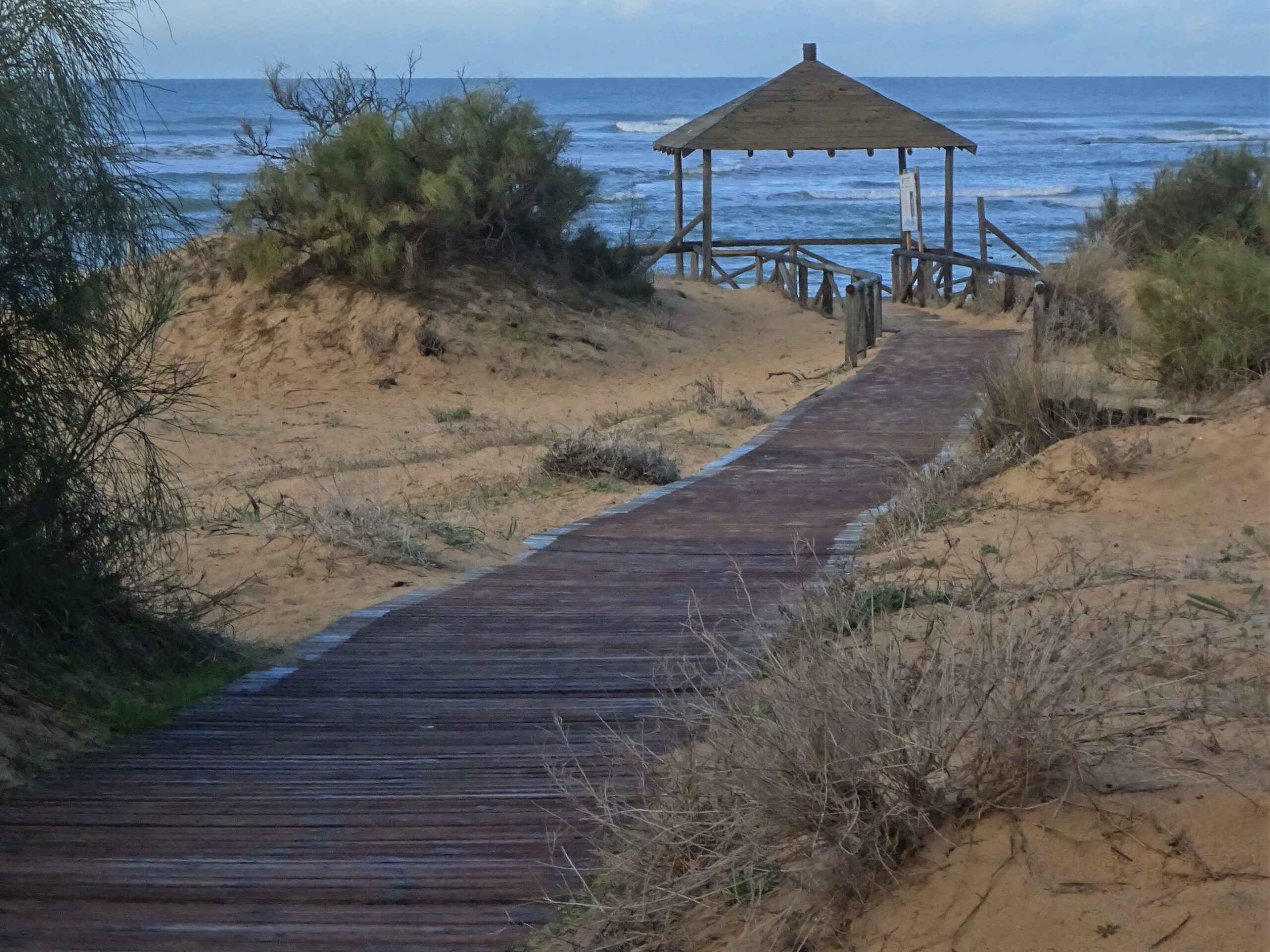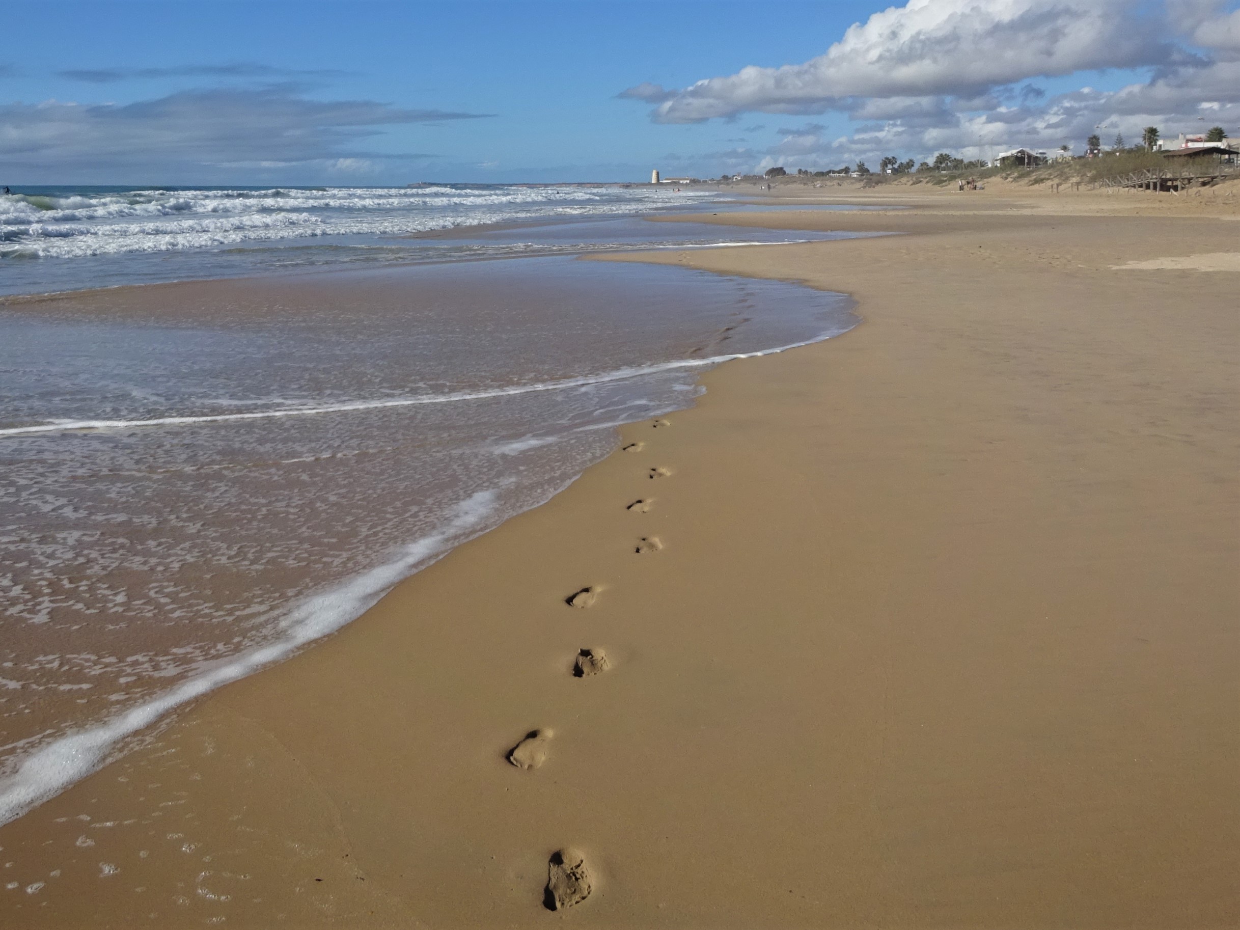 Eigentlich wollte ich einmal am Strand entlang von Chipiona nach Rota spazieren. Die ersten ca 8 km bis zum südlichen Teil des Strandabschnitts „Playa Ballena“ kenne ich ja schon vom November-Aufenthalt. Von dort wären es noch etwa 7 km Strandweg bis Rota. Das Wetter war aber heute nicht optimal zum Strandwandern, es war dicht bewölkt,
