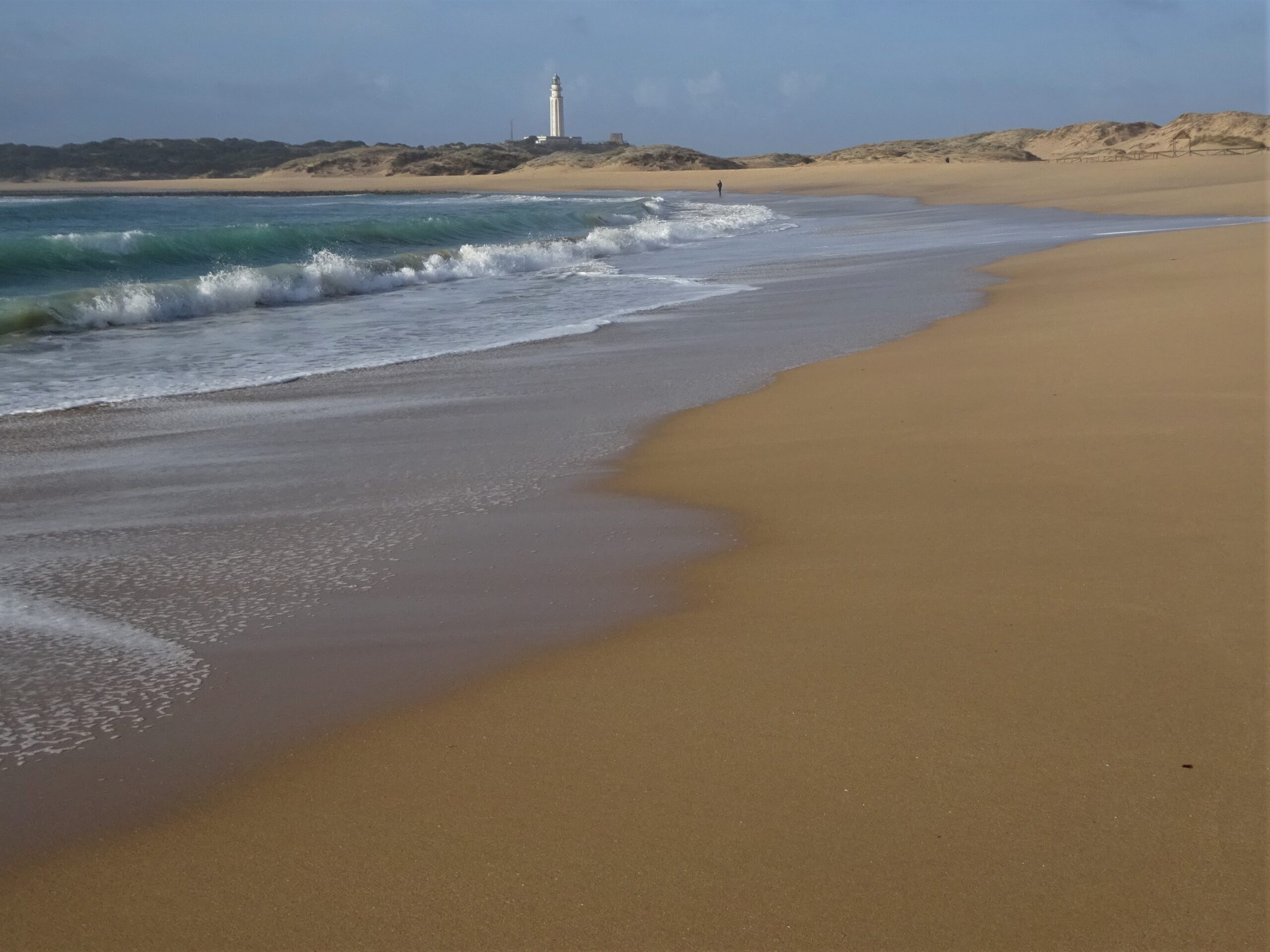 Heute war ich beim Kap Trafalgar. Mein Rotenplaner hätte eine Straße empfohlen, die direkt zum Leuchtturm führt, aber war schnell klar, dass diese Route nur mit Geländewagen Sinn macht. Ich hab das Auto in der Siedlung Caños de Meca östlich vom Kap abgestellt und hatte somit gleich einen schönen Strandspaziergang. Diese Straße hätte ich laut