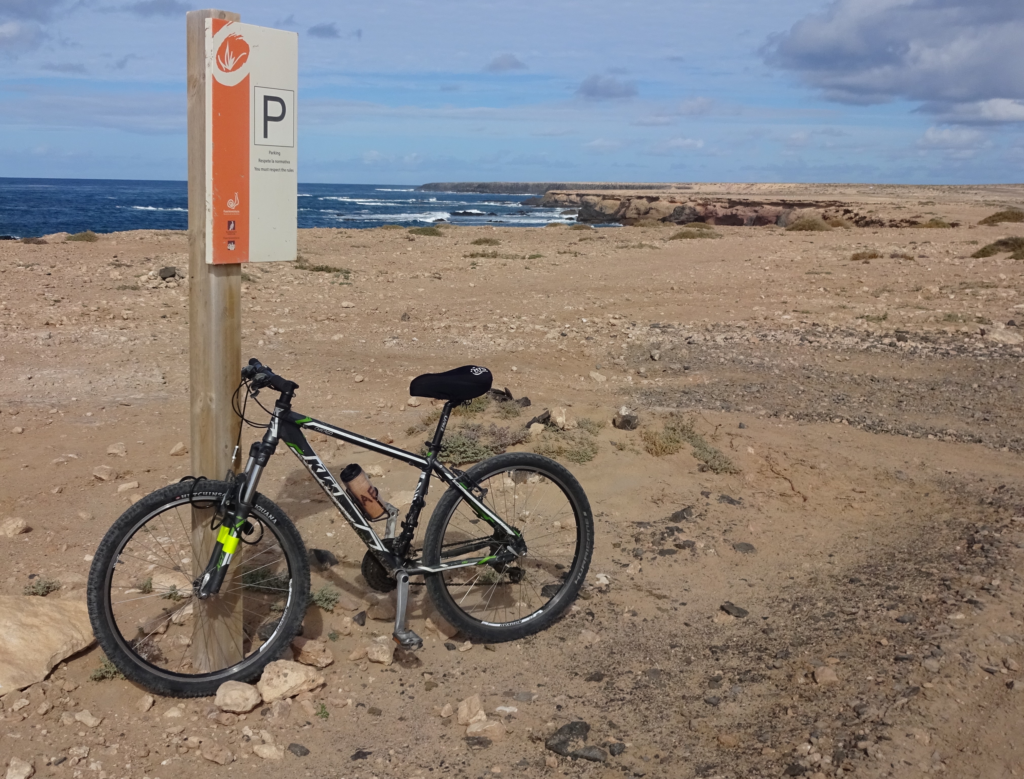 Heute habe ich meine erste größere Radtour gemacht. Den Hauptteil der Strecke bin ich auf der bekannten Sand- bzw. Schotterstraße gefahren, die zum Leuchtturm Faro de Jandía führt. Wegen des starken, böigen Westwindes war die Fahrt teilweise etwas anstrengend, ich hatte permanent Gegenwind. Abgesehen davon fand ich die Strecke zum Radfahren recht angenehm, es geht