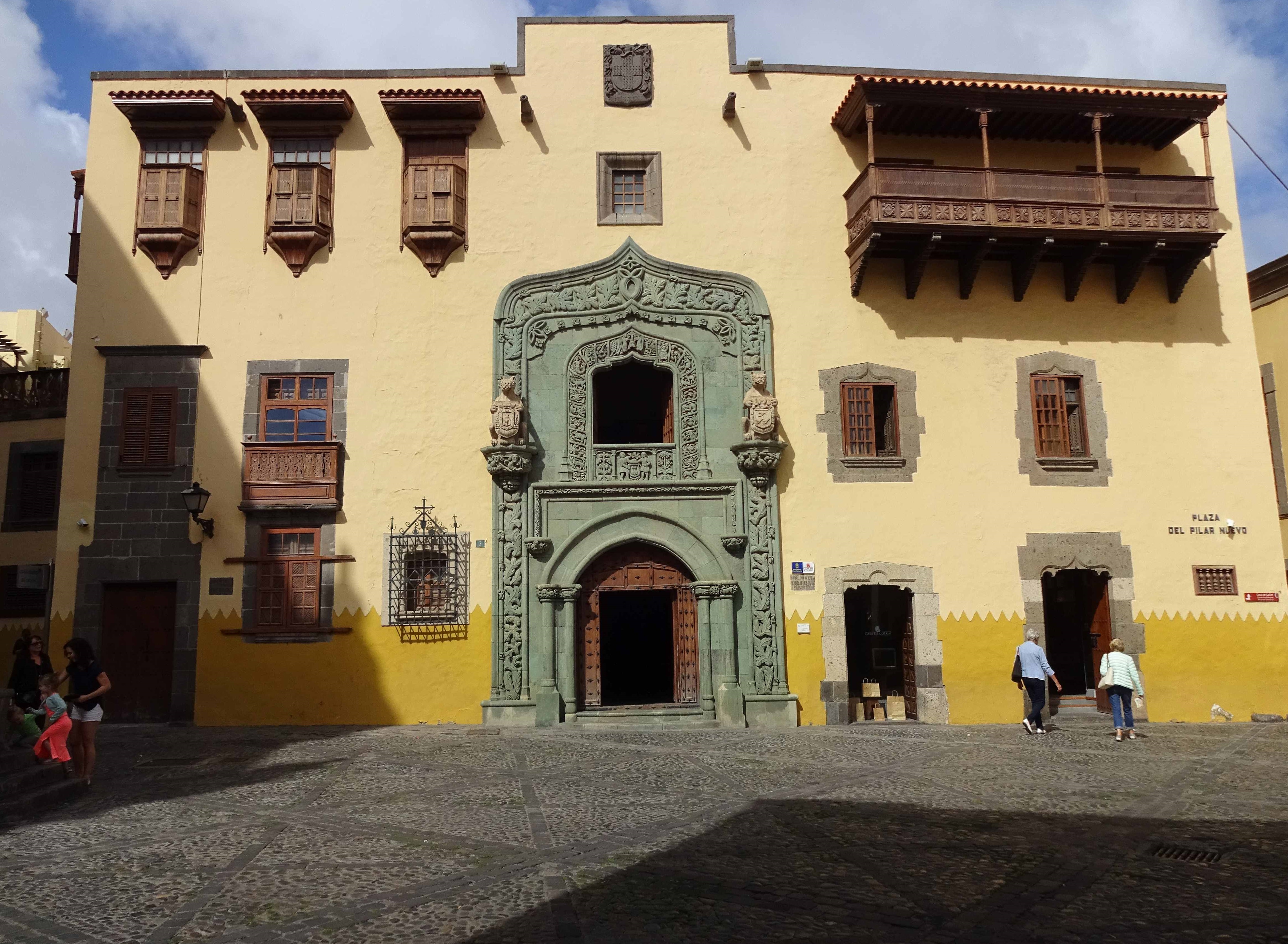 Heute bin ich mit der Armas Fähre auf Gran Canaria angekommen. Den Hafen von Las Palmas (die Armas legt am hinteren Nelson Mandela Hafen an) fand ich außergewöhnlich hässlich und übelriechend. Etwas abseits davon beginnt die Stadt mit einigen durchaus netten Plätzen und kleinen Parks. Ich wollte nach einem ersten Kaffee gleich in den historischen