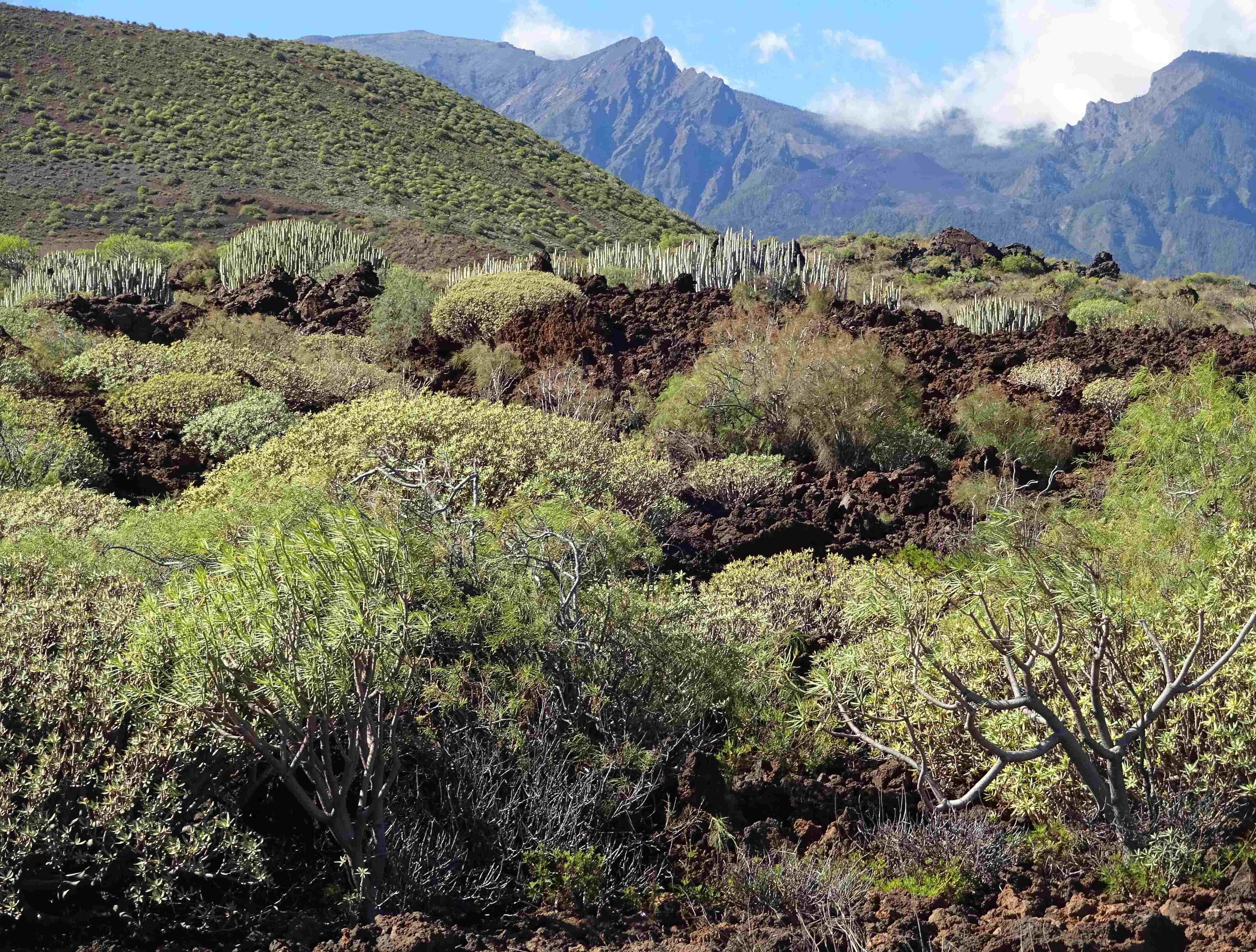 Vom windstillen Nordwesten sind wir heute an die windige Ostküste gefahren. Aber für eine Wanderung im Lavagebiet Malpaís de Güímar war das Wetter perfekt. Nur ganz oben an der Caldera des Vulkans Montaña Grande blies der Wind richtig stürmisch, ansonsten war er eine willkommene Erfrischung beim stundenlangen Wandern durch diese faszinierende Landschaft mit ungewöhnlich vielfältiger