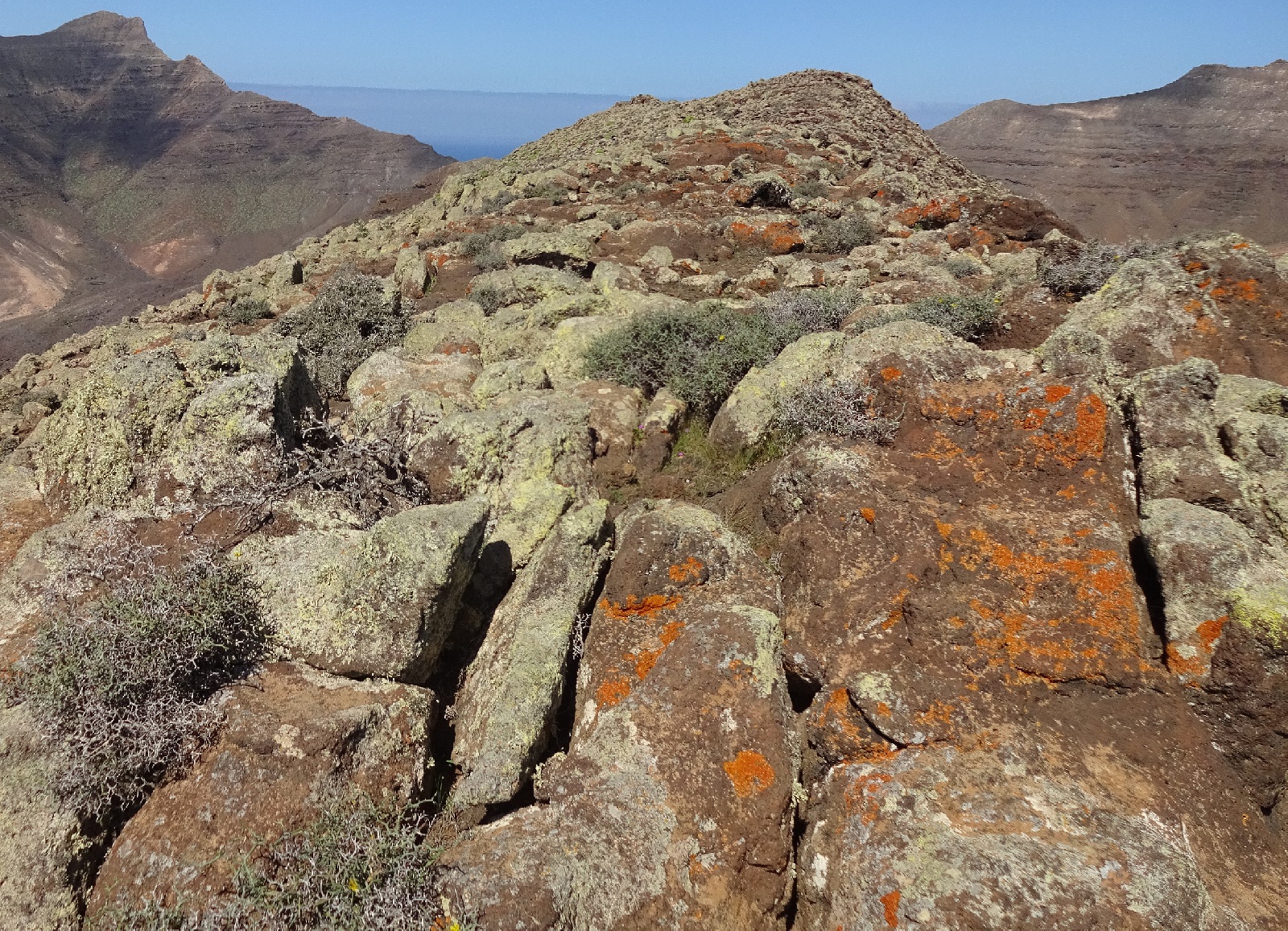 Um das Gebiet rund um die archäologische Fundstätte Atalayita schön überblicken zu können, bin ich, ohne es geplant zu haben, auf dem Weg zum Atalaya de Pozo Negro (439 m) gelandet. Ich hatte genügend Trinkwasser mit und beschloss, zum Gipfel zu gehen. Der Weg bot immer wieder wunderbare Ausblicke. Besonders beeindruckend fand ich die Blicke