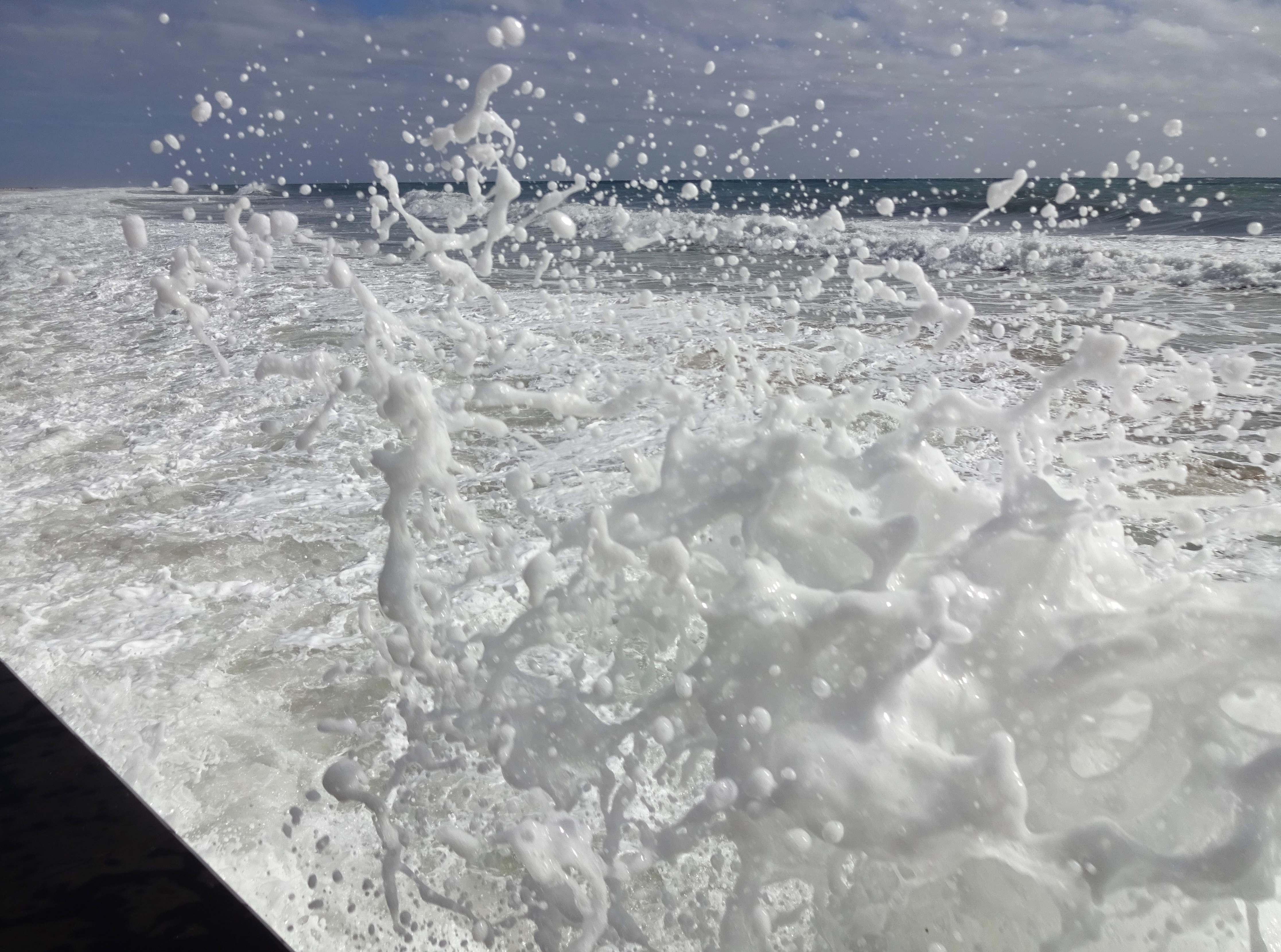 Am gestrigen Sonntag gab es in Morro Jable außergewöhnlich wilde Wellen. Der für das Wochenende vorhergesagte Starkregen blieb aus, auch der Wind war nicht so stürmisch wie angekündigt. Wir hatten warmen, böigen Südwestwind mit schönem Sonne-Wolken-Mix. Die Wellen waren allerdings heftig. Zum Zusehen ein faszinierendes Schauspiel! Der Strand beim Leuchtturm wurde völlig überschwemmt. Die Liegenvermieter
