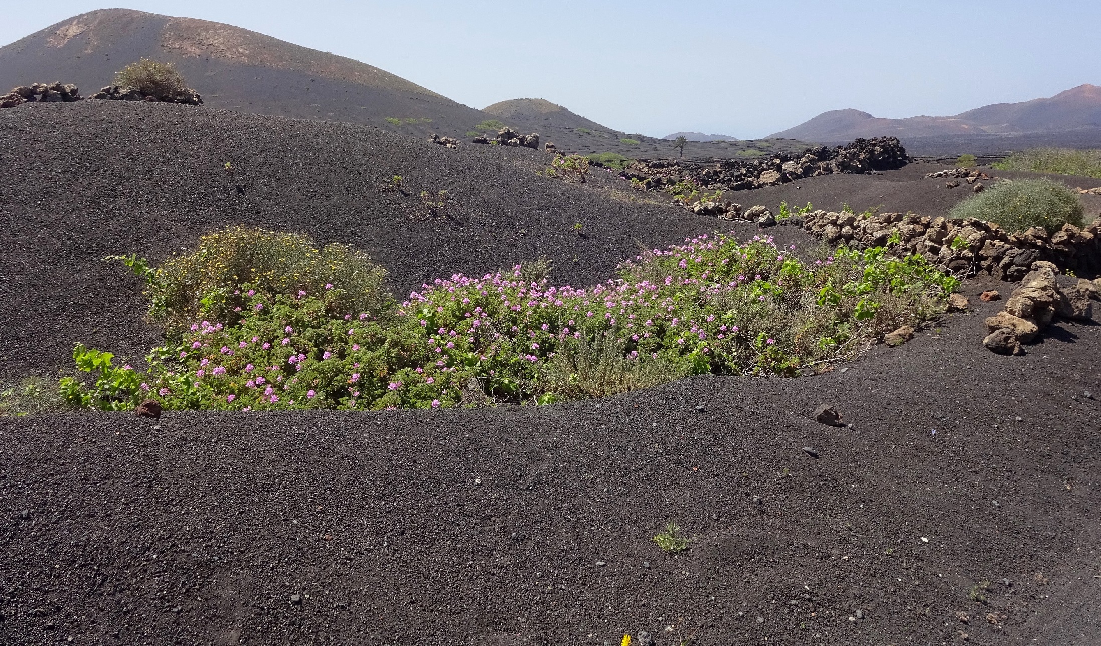 Eigentlich wollte ich bei der Heimfahrt von Famara nur einen Fotostopp im Weinbaugebiet machen. Aber dann habe ich einen Weg entdeckt, der in die alten Weinfelder Richtung Feuerberge führt. Ich bekam natürlich sofort Lust, ein wenig durch diese wunderbare Gegend zu spazieren. Hier stehen auch viele prächtige Feigenbäume. Reif sind die Feigen noch nicht, aber