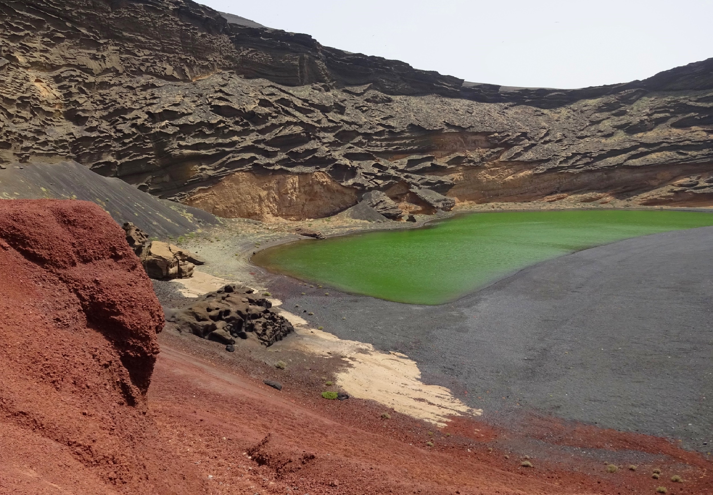 Nach meiner Wanderung auf den Atalaya de Femés bin ich Richtung El Golfo gefahren. Ich habe mir die Salinas de Janubio angeschaut, von denen heutzutage nur mehr etwa ein Fünftel zur Salzgewinnung genutzt wird. Danach war ich am gleichnamigen Lavastrand Playa del Janubio. Eine Abkühlung war schon dringend nötig! Zwischen den Lavasteinchen sah ich zahllose
