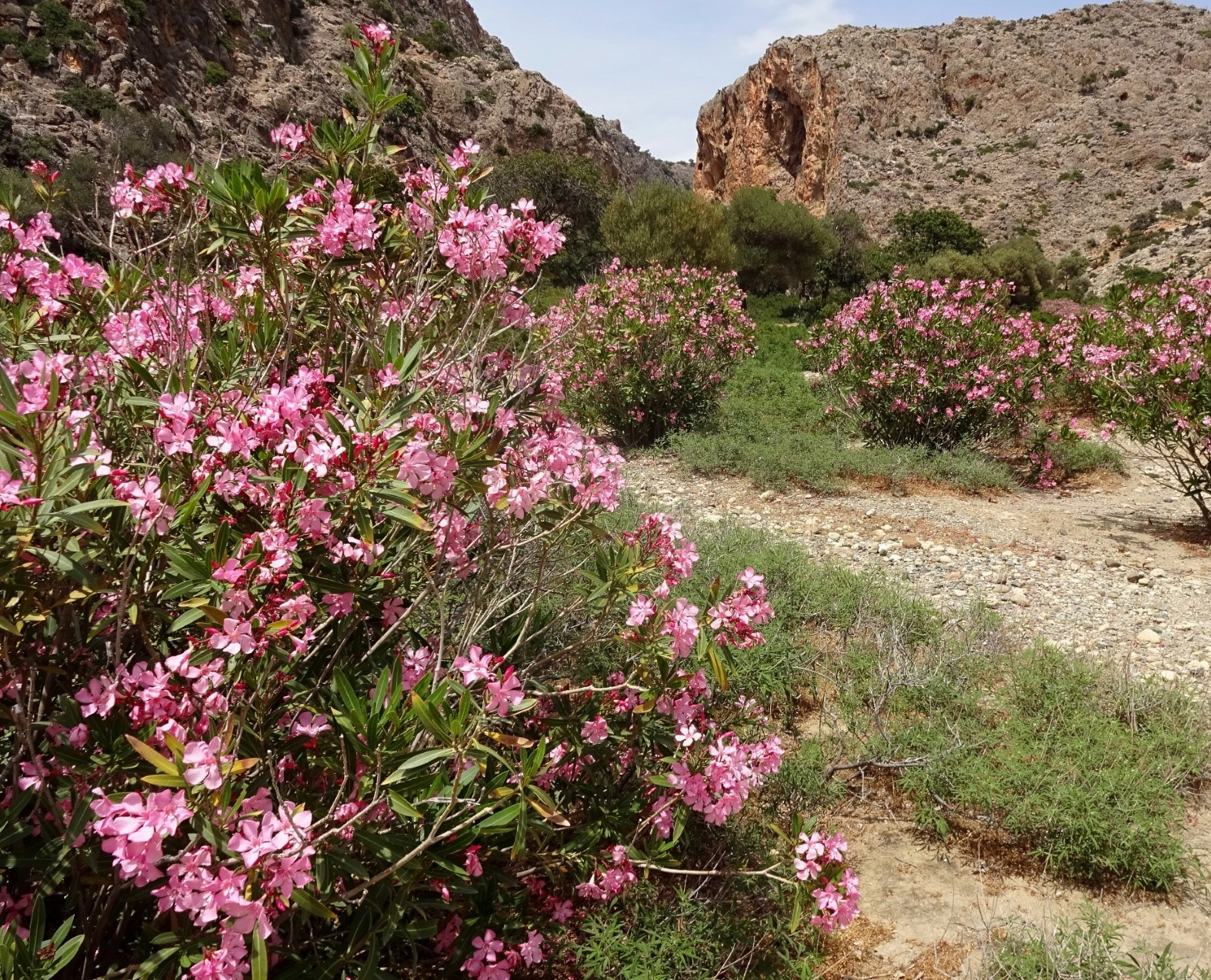 Heute bin ich durch die Agiofarango Schlucht, die Schlucht der Heiligen, gewandert. In dieser Gegend gibt es unzählige Höhlen, die früher von Eremiten bewohnt wurden. Ausgangspunkt der Wanderung war in der Nähe des Klosters Odigitria. Auf eine Besichtigung des Klosters aus dem 15. Jahrhundert habe ich mangels angemessener Kleidung verzichtet (in kurzen Hosen und ärmellosem