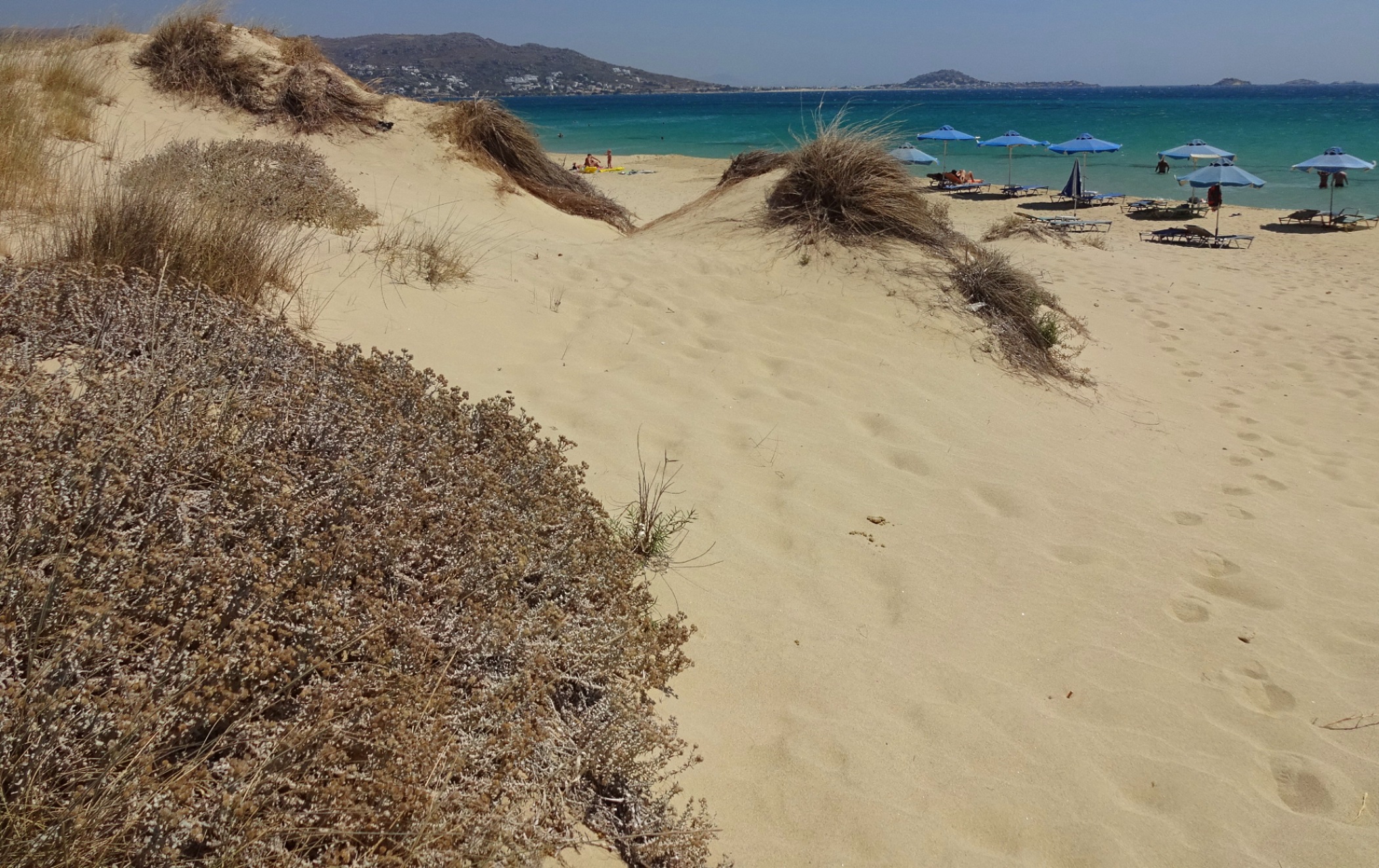 Der Agia Anna Beach liegt ca. 2,5 km nördlich von Plaka. Heute Vormittag habe ich einen wunderschönen Strandspaziergang dorthin gemacht. Immer wieder baden im paradiesisch schönen Meer, ein wenig weitergehen, wieder baden,… – soooo ein Hochgenuss! 🙂 Die Insel im Hintergrund ist Paros. Zwischen dem Plaka Beach und dem Agia Anna Beach liegt ein Wacholderwäldchen,