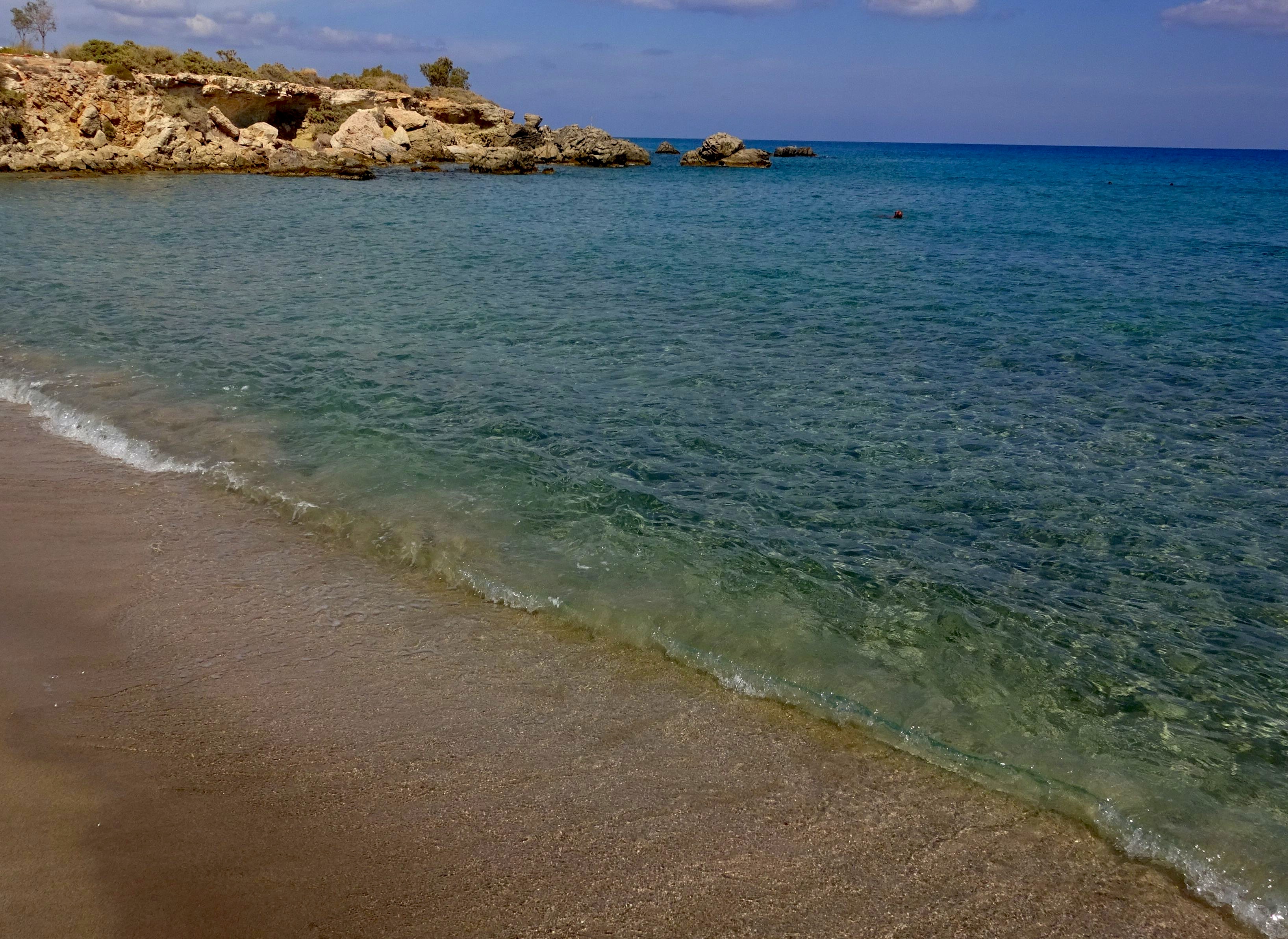 Heute waren wir in Sitia frühstücken und haben diese liebenswerte Stadt im Nordosten wieder einmal genossen. Durch die wunderbare Landschaft Ostkretas fuhren wir dann nach Xerokambos in den äußeren Südosten. So schönes, warmes, türkisblaues Meer! Xerokambos besteht aus einem kleinen Dorf und mehreren tollen Sandbuchten. Es ist wunderschön hier zum Baden und Herumspazieren. Ein traumhafter