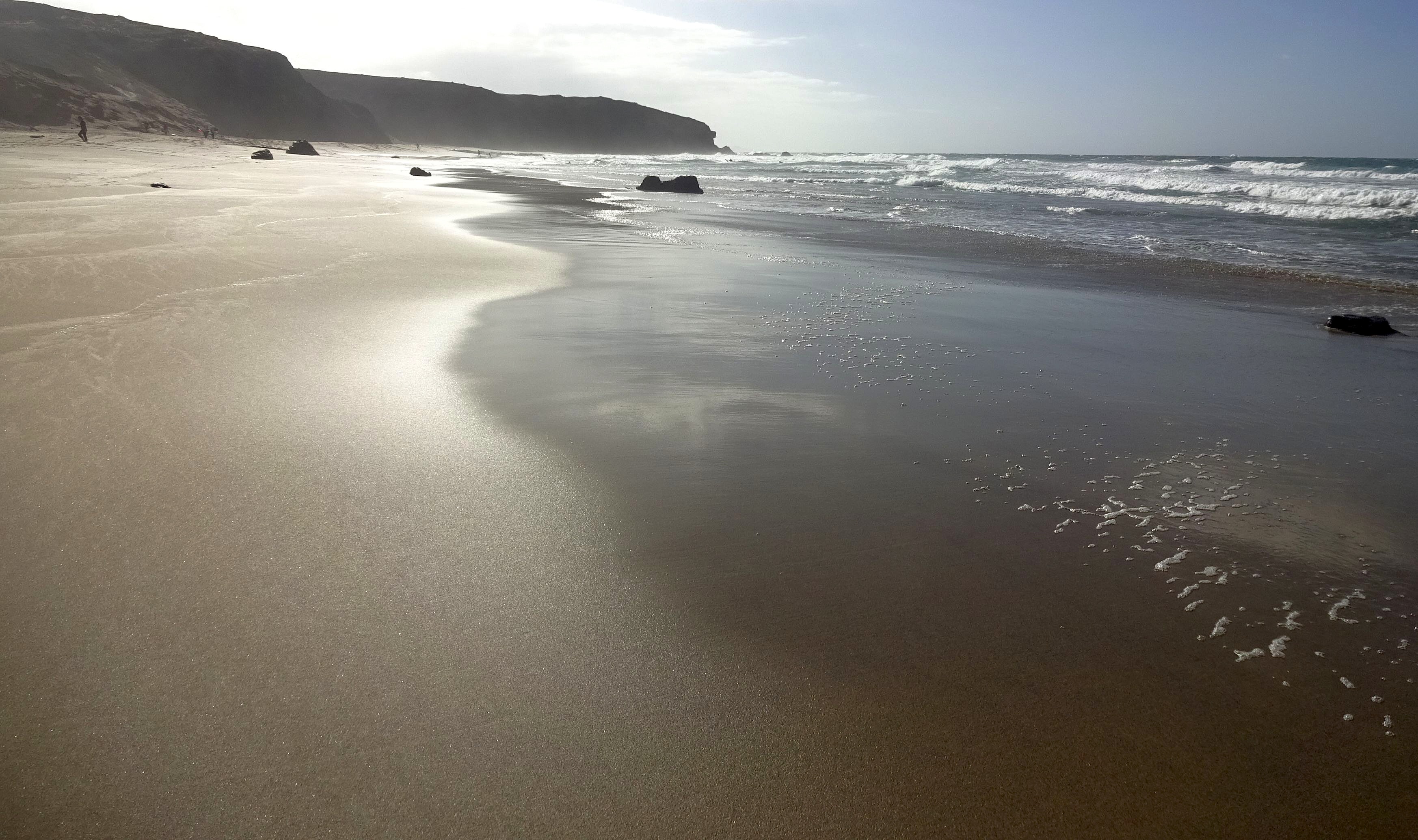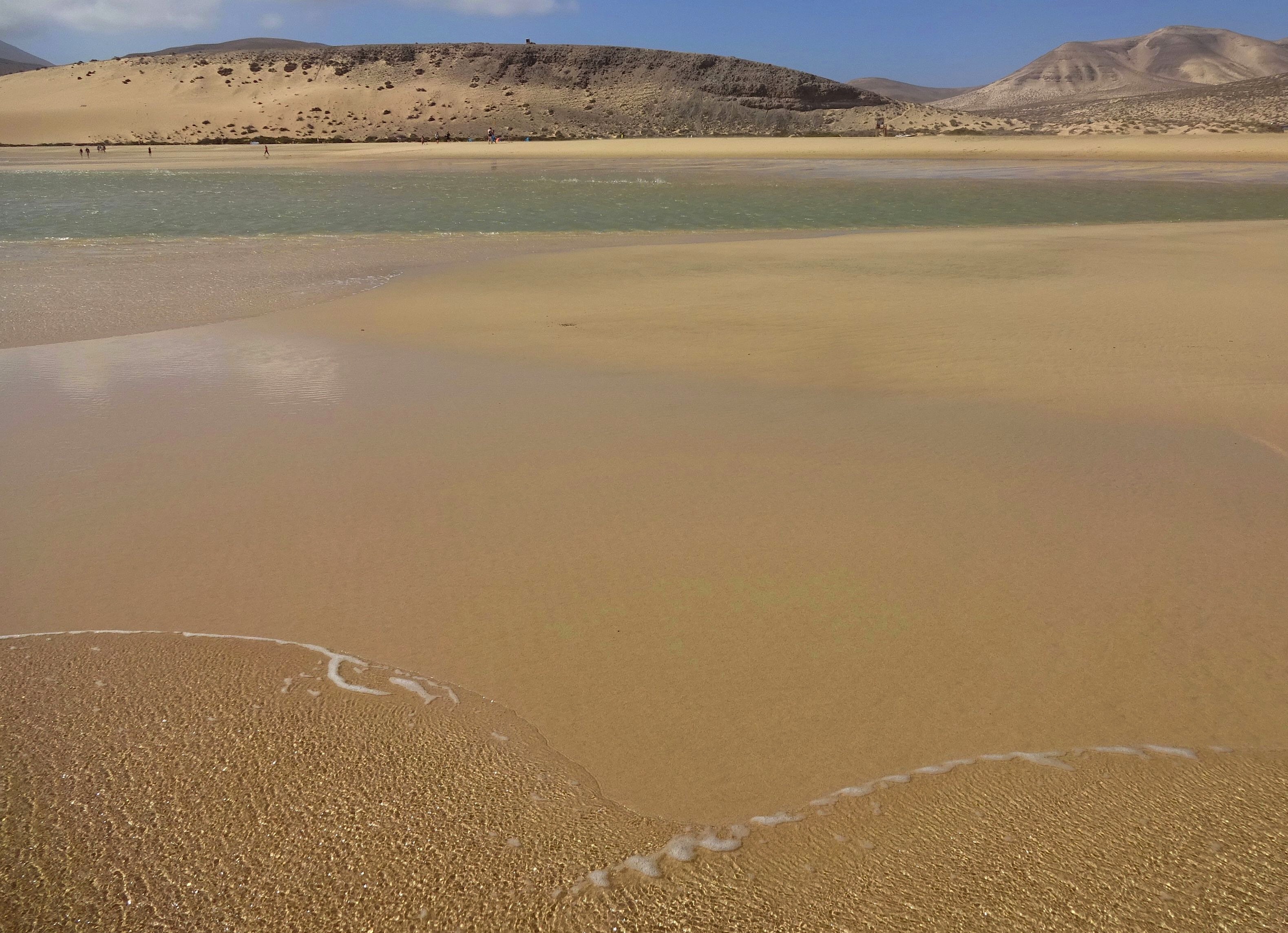 Der heutige Tag hat bewölkt begonnen. Wäre ein guter Tag für eine Wanderung gewesen. Allerdings ist mir gerade nach ganz viel Barfußgehen zumute und ich habe mich für Strandspazieren an der Playa de Sotavento entschieden. Auf unterschiedlichstem Untergrund ist hier das Barfußgehen ein Genuss. Weicher, feuchter Sand zum tiefen Einsinken bei jedem Schritt, steinharter trockener