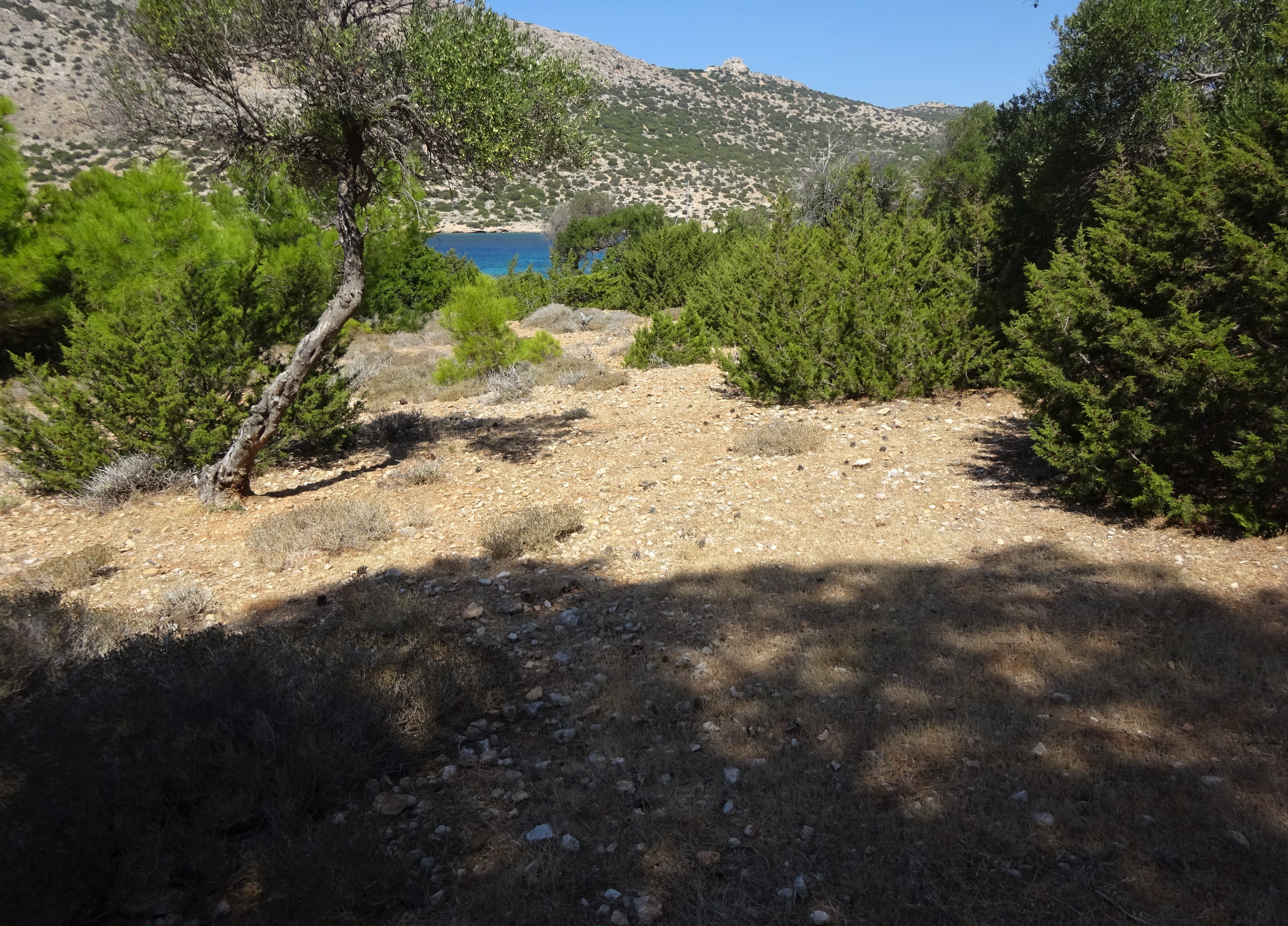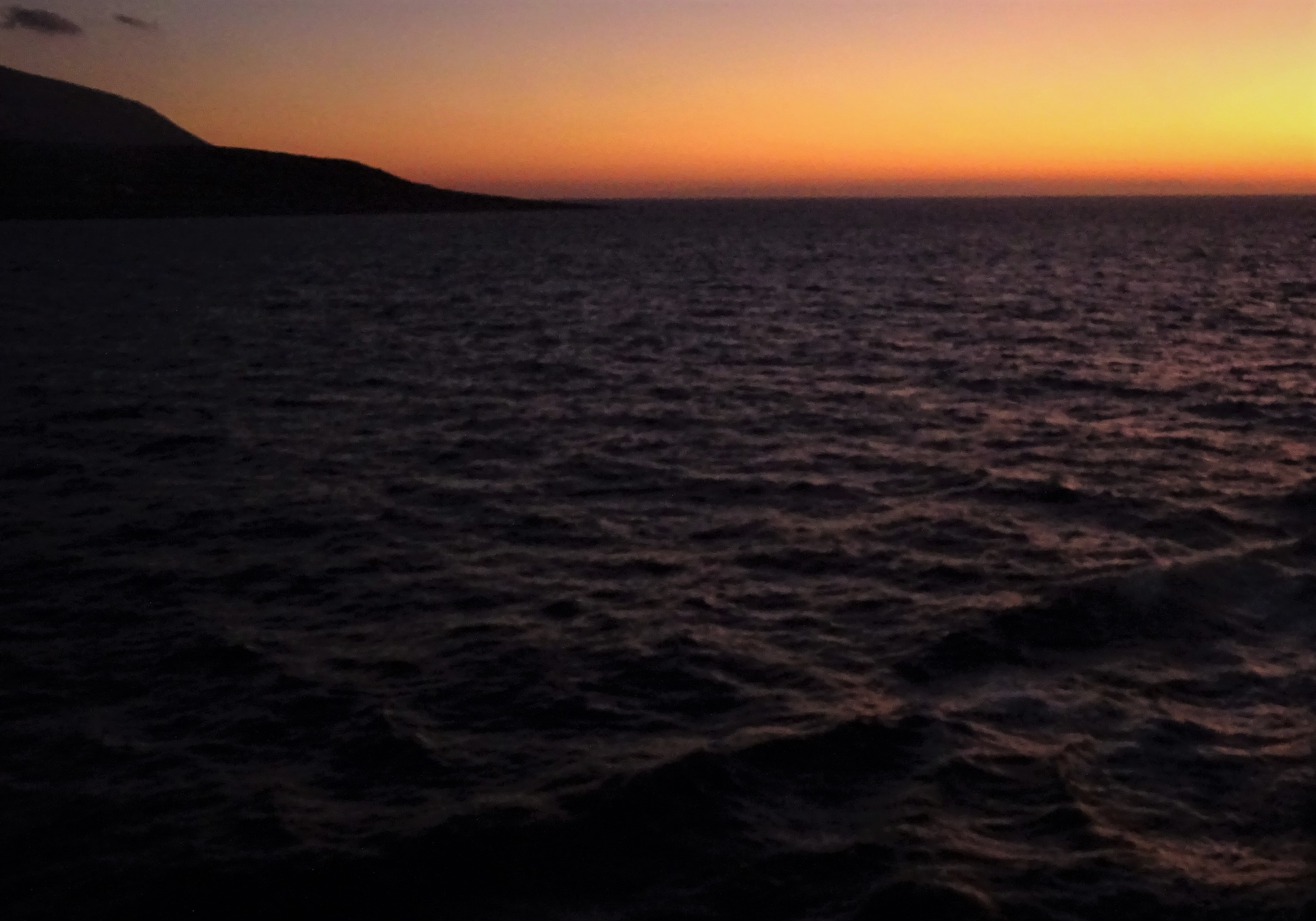 Am 16. September haben wir die Insel Alimnia besucht, die seit den 1960er Jahren unbewohnt ist. Die Insel ist sehr waldreich und hat im Gegensatz zu Chalki eigene Süßwasserquellen. Wäre mit etwas Infrastruktur bestimmt eine sehr schöne Insel zum Wohnen. Doch bevors losging, gab es eine tolle Sonnenaufgangsüberraschung: Mein Lieblingsschiff Prevelis kam mit 33-stündiger Verspätung