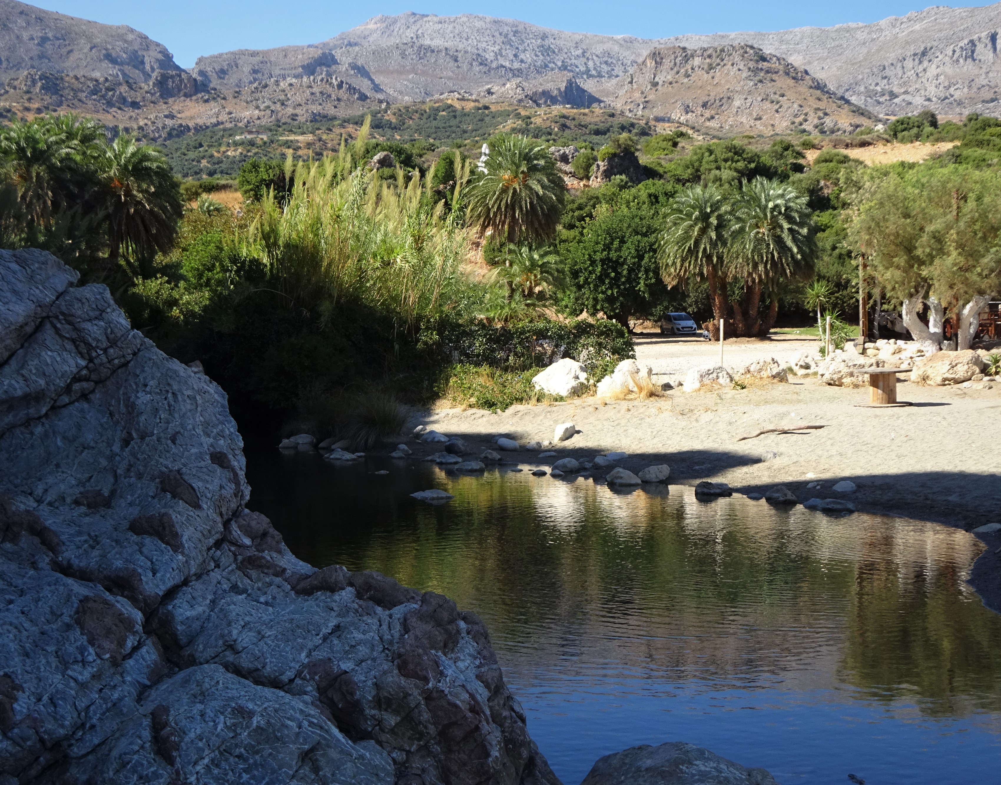 Mit einem Tag Verspätung bin ich also heute nach Plakias gekommen. Ich mag Plakias als „Basisstation“ sehr gern, weil es rundherum so viele tolle Ausflugsziele und im Ort gute, preiswerte Tavernen und einen langen Strand für schöne Abendspaziergänge gibt. Heute war ich hauptsächlich am Dorfstrand und im Ort unterwegs und nachmittags bin ich noch zum