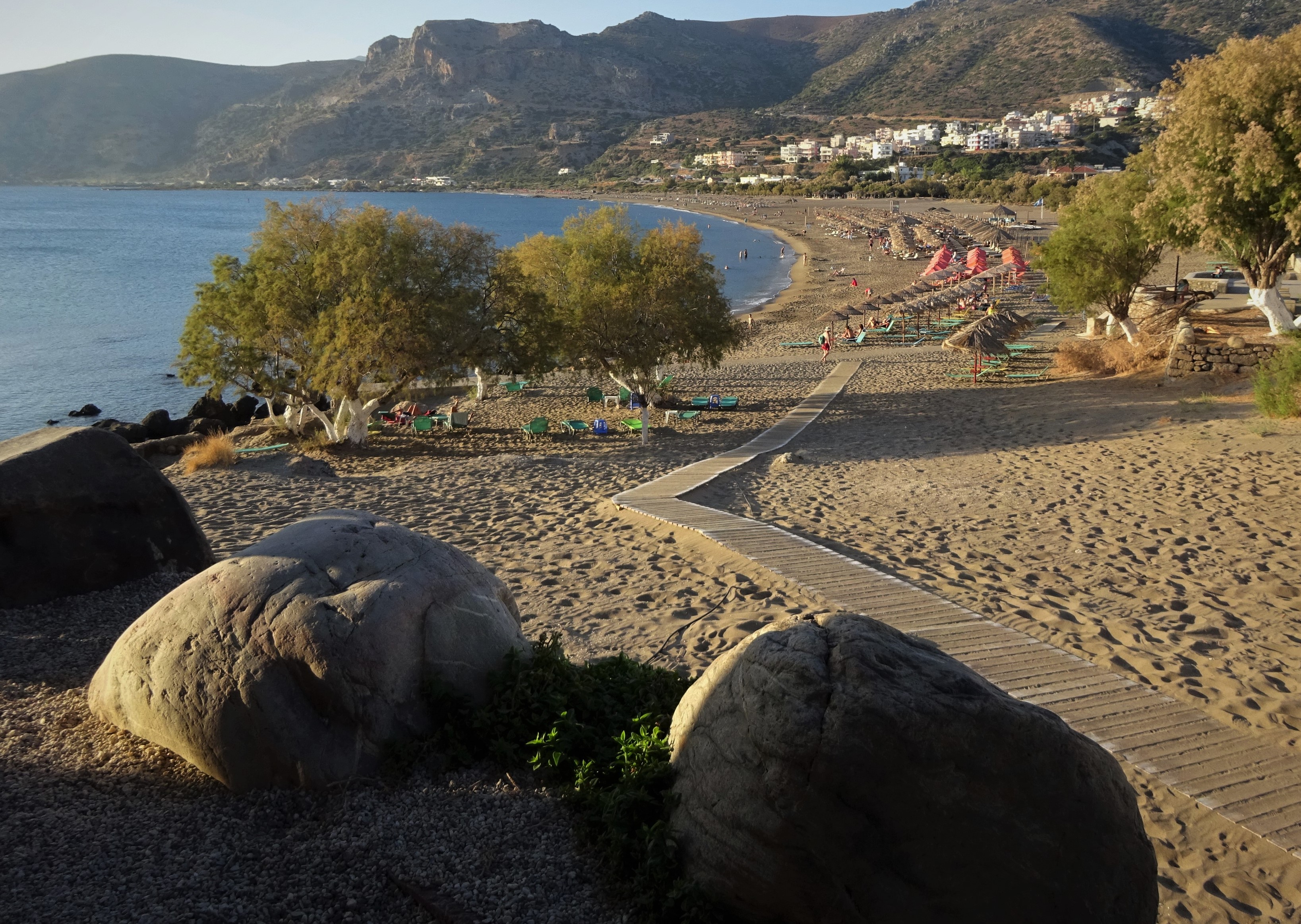 Seit gestern ist die Wetterstimmung auf Kreta herbstlich. Mit 28 Grad (gestern dank Südwind sogar 30 Grad) ist es zwar immer noch sommerlich warm, aber Wolken, Wind und Wellen kündigen das allmähliche Ende des Sommers an. Strandbilder von heute Morgen: Ich hab heute beschlossen, einen Ausflug nach Elafonissi zu machen. Die Strecke ist landschaftlich wunderschön.