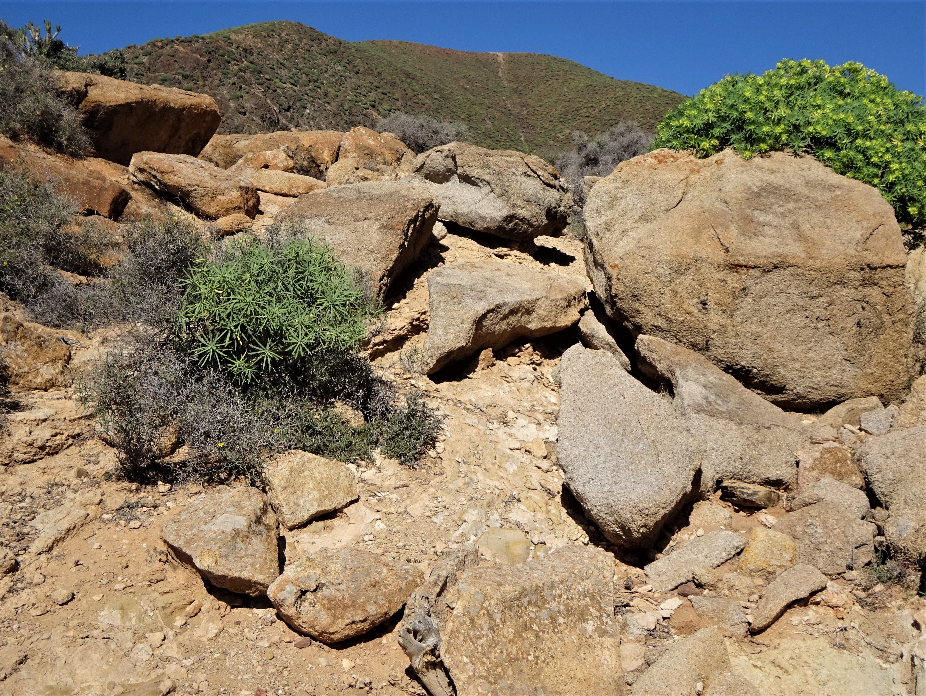 Meine Wanderkarte nennt den tollen Küstenabschnitt, den ich kürzlich wieder einmal besucht habe, Agua Liques. Für mich ist das die Costa Mágica, weils so bezaubernd schön ist! ♥ Das Auto habe ich an der Zufahrtsstraße „Pueblo del Mar“ etwa 3km vor La Pared abgestellt. Dann gings über viele Sandhügel des Istmo de la Pared in