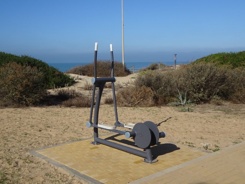 Hinterm Strand habe ich an einer Promenade Fitnessgeräte entdeckt. Während stundenlanger Strandspaziergänge mit vielen Badestopps mal zwischendurch am Crosstrainer mit Meerblick trainieren, ist auch was Feines 😊