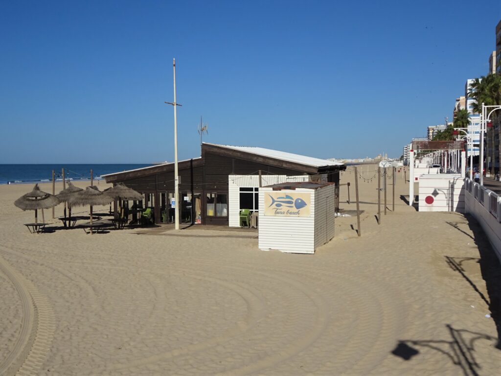 Die ganze Westseite von Cádiz besteht aus einem langen Sandstrand mit Promenade, vielen Hotels, Restaurants und Bars.