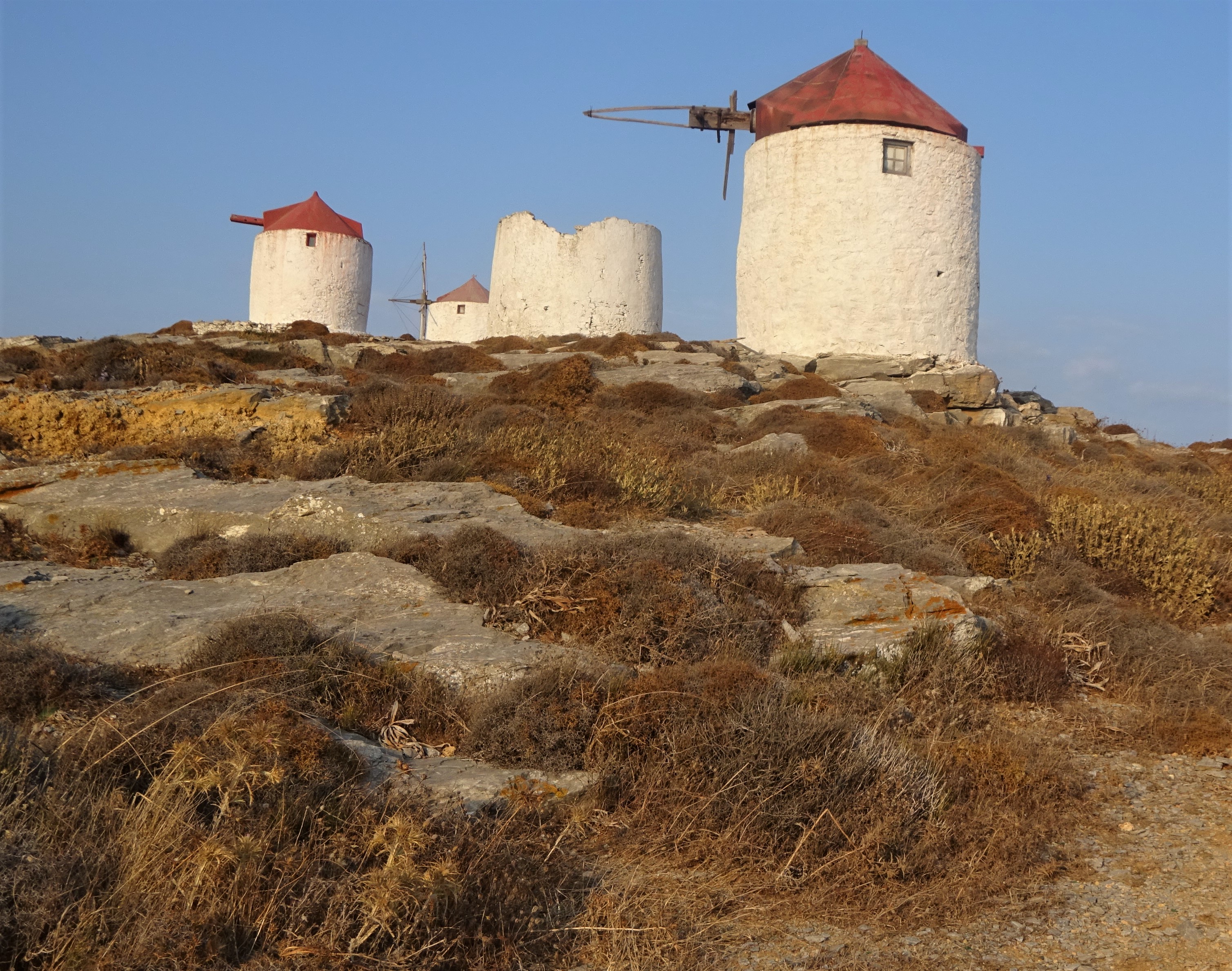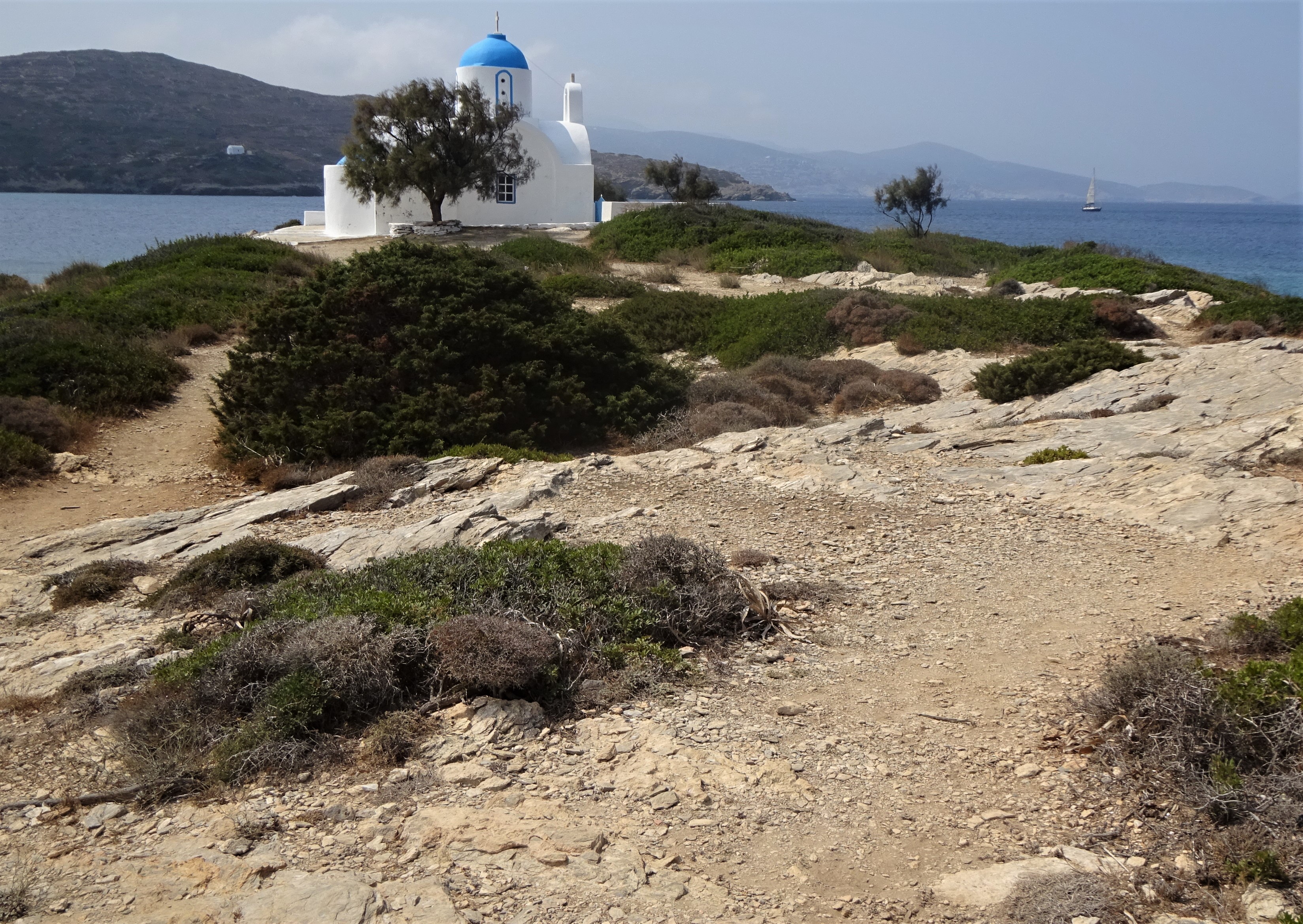 Der heutige Tag begann bewölkt. Die etwas schaurige Wetterstimmung passte irgendwie zur Atmosphäre am sonderbar einsamen Campingplatz. Ich hab mich für einen Ausflug nach Aegiali entschieden. Der Hafenort liegt im Osten der Insel und hat einen der wenigen Sandstrände. Die 20 km lange, kurvenreiche Busfahrt dauerte fast eine Dreiviertelstunde. Zwischendurch sind wir durch dichte Nebelwolken