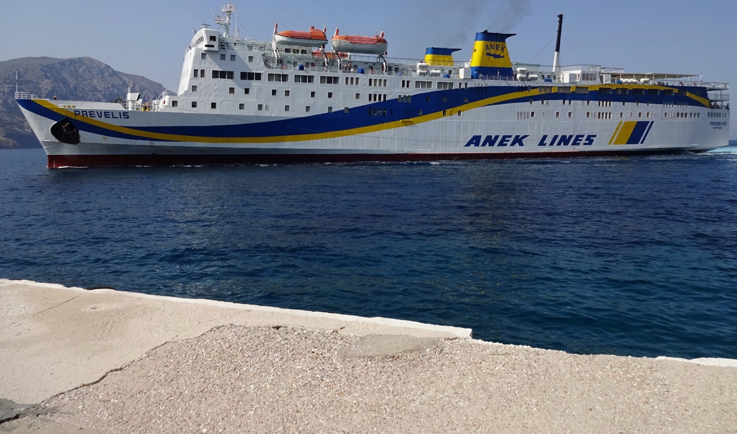 Gestern Abend bin ich mit der Prevelis von Pigadia nach Diafani, dem kleinen Hafenort im Norden von Karpathos, gefahren. Zum Abschied bekam ich von der lieben Vermieterin der Avra Pension noch Kekse, ein Koulouri (Sesamring) und ein frisches, warmes Tiropitaki (Schafkäse in Blätterteig). Die Fähre hatte wieder die übliche Verspätung und es war schon stockfinster,