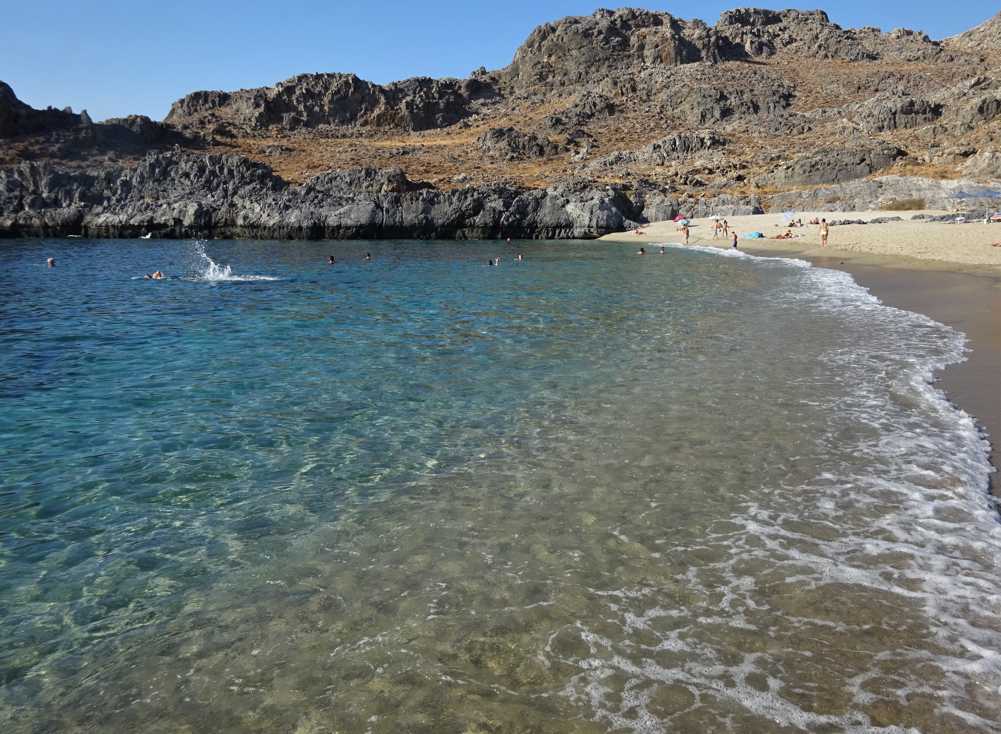 Von der Herbststimmung der letzten beiden Tage war heute nichts mehr zu spüren. Sonniges Sommerwetter, 28 Grad und sanfter Streichelwind aus dem Westen. Ideal zum Baden am Gialiskari Beach (Strand von Anidri) 🙂 Diesen gemütlichen Strand östlich von Paleochora hab ich so gern und nirgendwo anders kenne ich das Meer weicher, salziger und energiereicher als