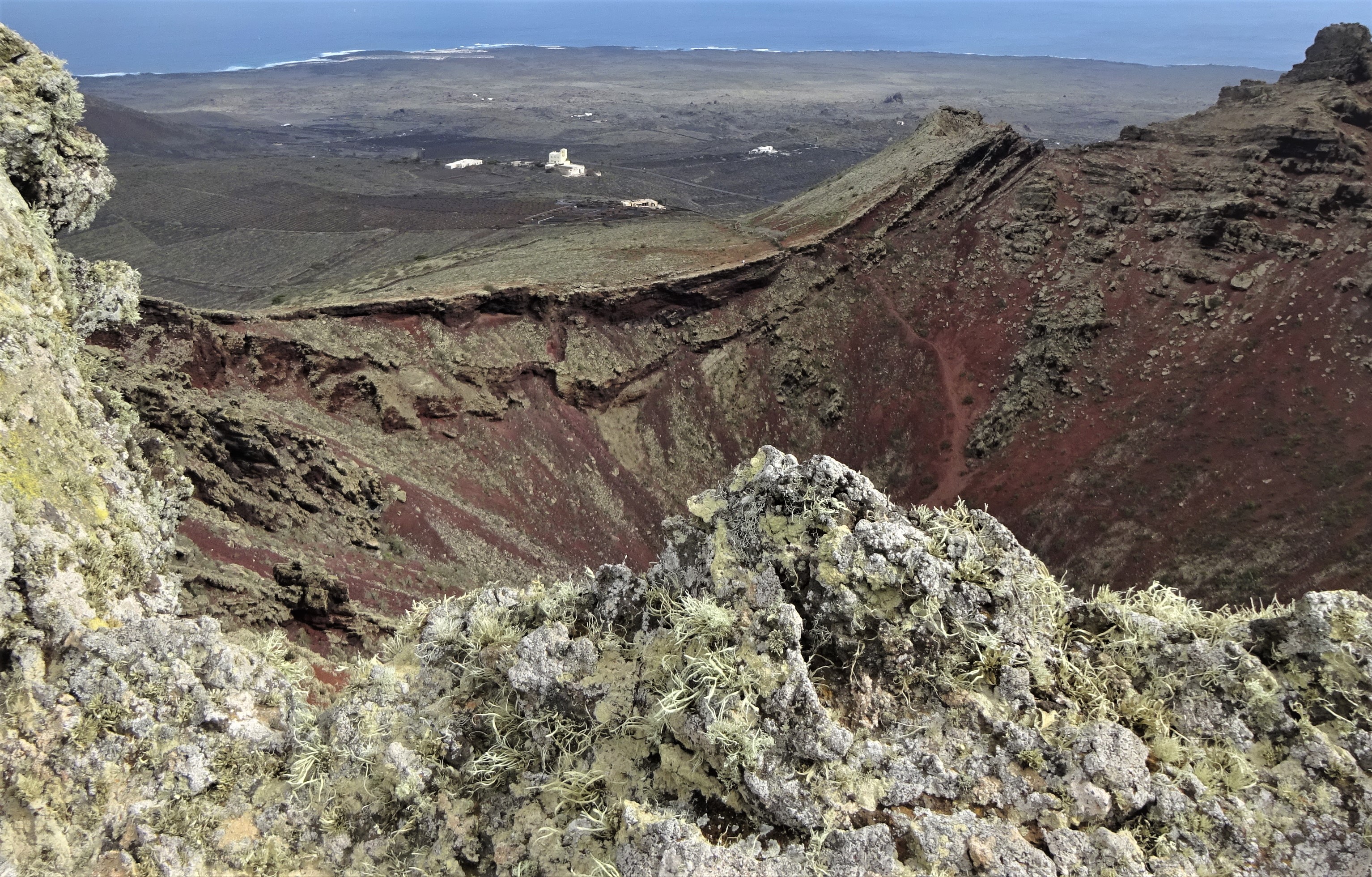 Heute habe ich eine anspruchsvolle Wanderung am Monte Corona gemacht. Mit 609 m ist er der höchste Vulkan Lanzarotes, der bestiegen werden kann. Der höchste Inselberg Peñas del Chache (670 m) ist im Gipfelbereich militärisches Sperrgebiet und deshalb nicht zugänglich. Geplant war diese Wandertour heute nicht, denn eigentlich wollte ich nur ein Stück entlang des