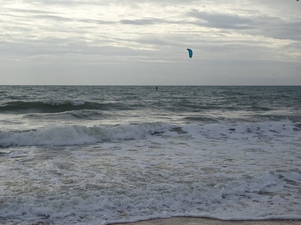 Nachtrag 8.12.: Letzte Nacht war recht stürmisch und das Meer hat sich viel Sand geholt, die Abbruchkante ist an manchen Stellen höher als ich!