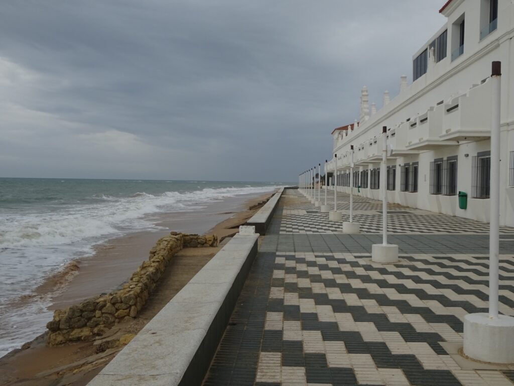 Eigentlich wollte ich einmal am Strand entlang von Chipiona nach Rota spazieren. Die ersten ca 8 km bis zum südlichen Teil des Strandabschnitts „Playa Ballena“ kenne ich ja schon vom November-Aufenthalt. Von dort wären es noch etwa 7 km Strandweg bis Rota.