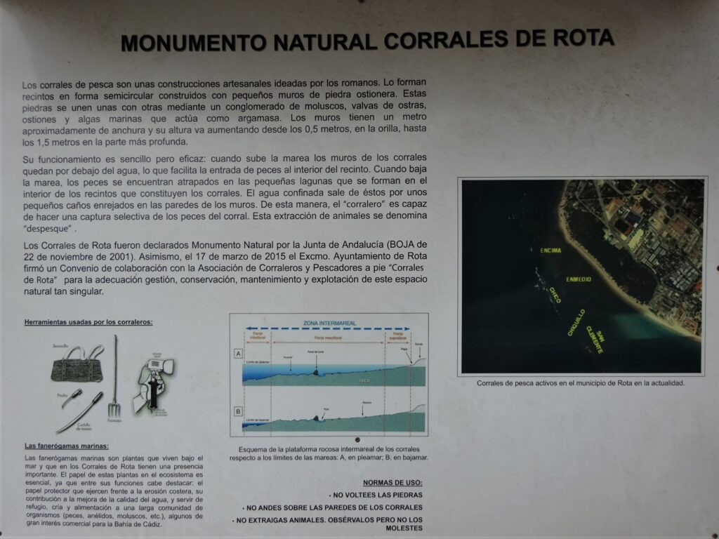 In der Nähe informieren Tafeln über die Corrales von Rota. Diese Fischfangkultur gibt es also hier auch.