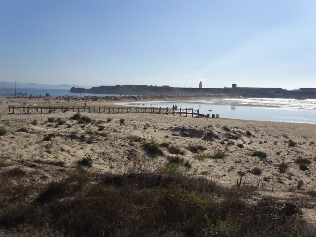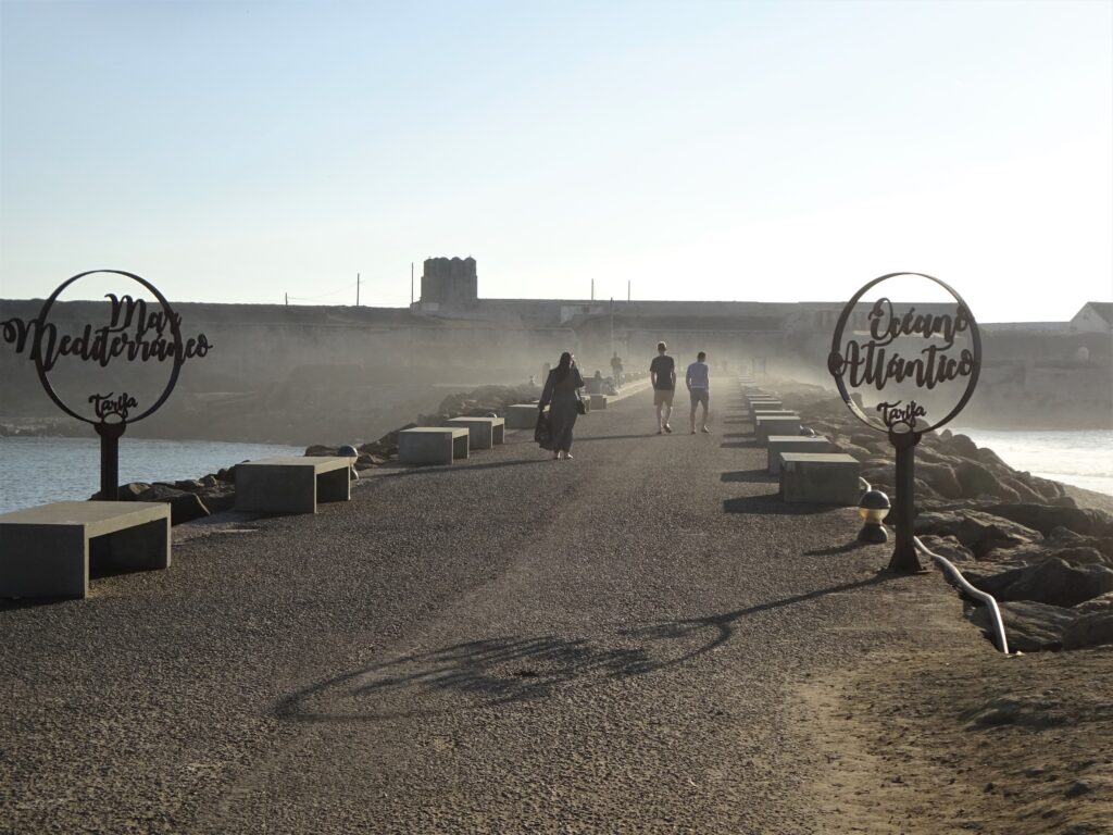 Tarifa ist normalerweise ein Eldorado für Kitesurfer. Der Levante aus dem Osten und der oft stürmische Poniente aus dem Westen treffen hier aufeinander und sorgen eigentlich für ganzjährige Windgarantie. Die Straße von Gibraltar hat dazu noch eine beschleunigende Düsenwirkung auf die Winde. Nur als ich dort war, waren gerade sämtliche Winde eingeschlafen. Die Meere sahen trotzdem recht unterschiedlich aus. Sehr ruhiges Mittelmeer und bewegter Atlantik.