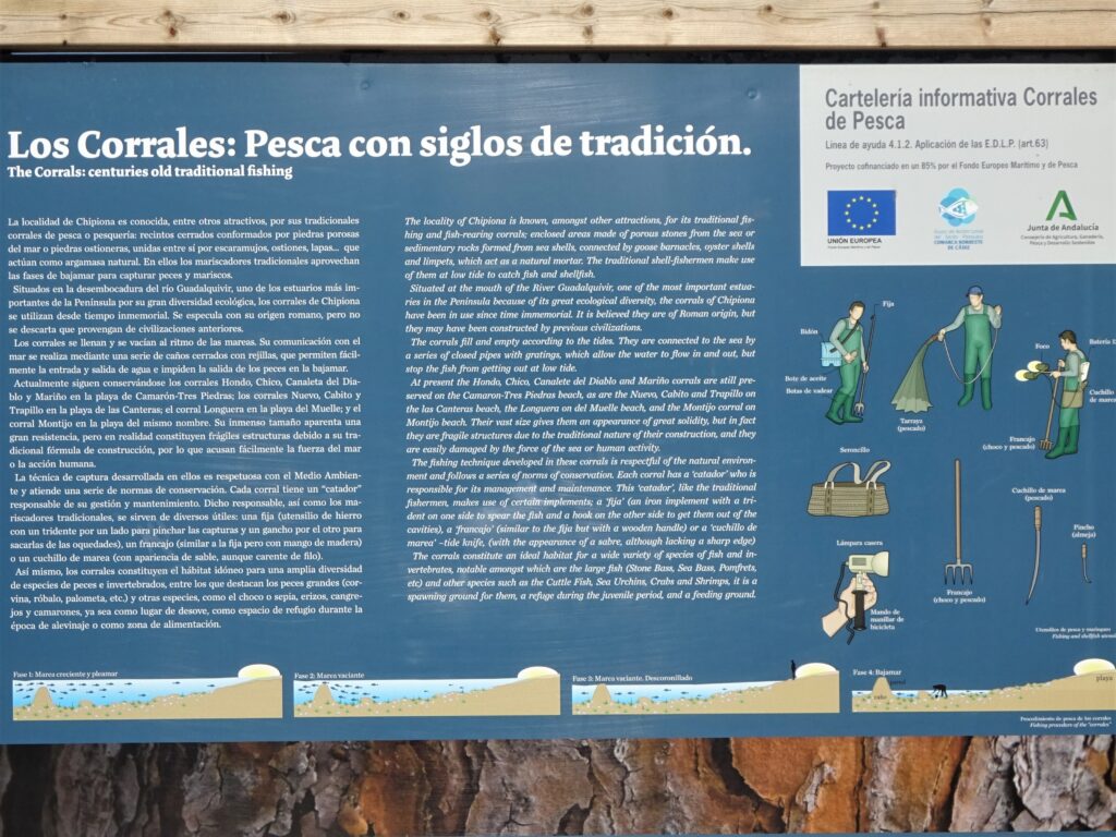 Die Becken haben alle einen Namen, je nach Lage und Besonderheit und werden von eigenen Fischern betreut, die einer speziellen Vereinigung angehören und die sich streng an die traditionellen Methoden halten müssen. Der Fischfang bzw das Absammeln der gefangenen Fische und Meerestiere erfolgt hauptsächlich mit Dreizack, Messer und Korb. Entlang der Holzstege und an der Promenade gibt es dazu einige Infotafeln: