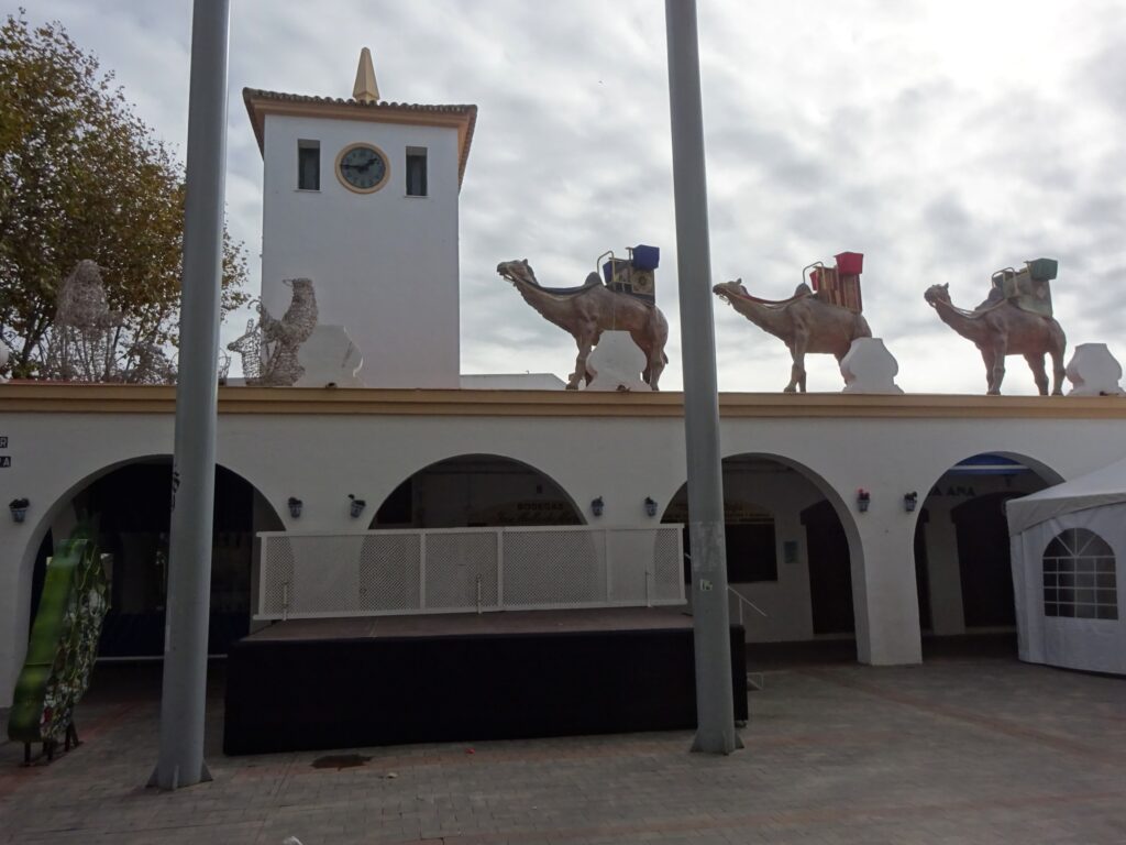 Am späteren Nachmittag war ich noch im Stadtzentrum. Am Dach der Markthalle stehen schon die Kamele für die Heiligen Könige 🐫🤴