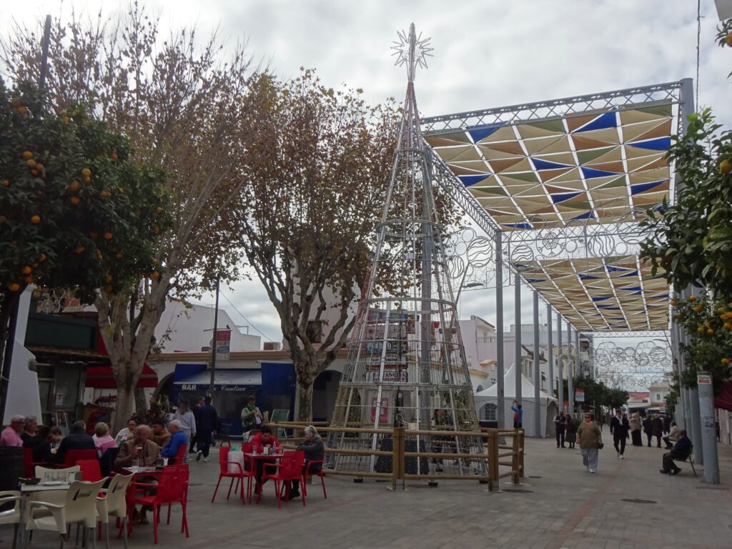 Natürlich hängen auch schon überall die Weihnachtsbeleuchtungen und der Metall-Weihnachtsbaum steht.