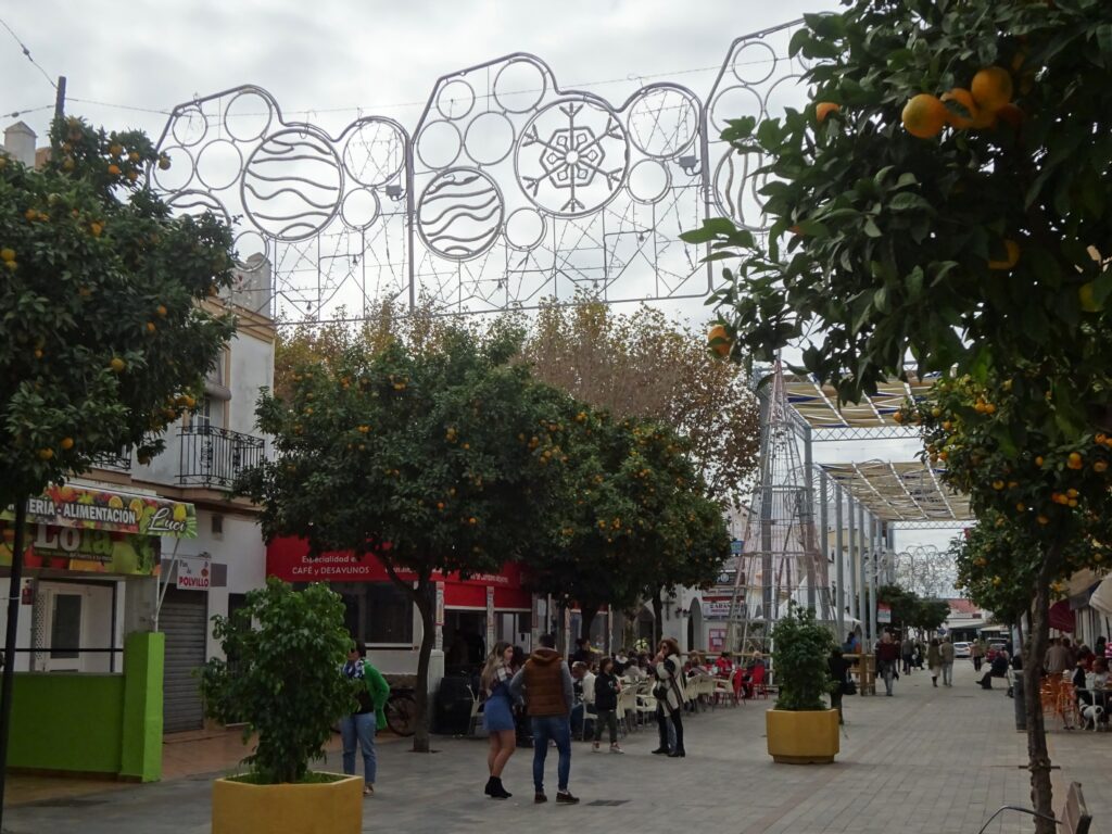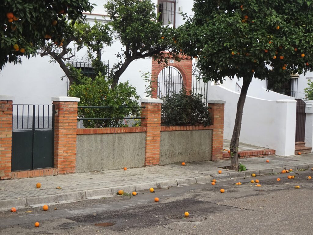 Die Orangen sind jetzt aber wirklich erntereif! Entlang der Straßen stehen in Chipiona ja unzählige Orangenbäume. Zurzeit liegen schon viele überreife Orangen am Boden herum.