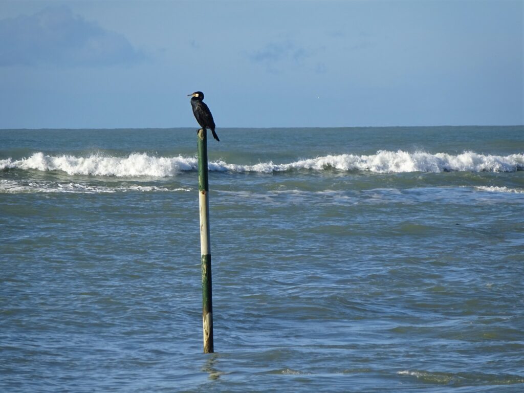 Heute bin ich -nach ganz viel Katzenkuscheln- natürlich gleich zum Strand spaziert! In der Nacht hat es geregnet, die Holzstege waren noch nass und das Meer ziemlich aufgewühlt.